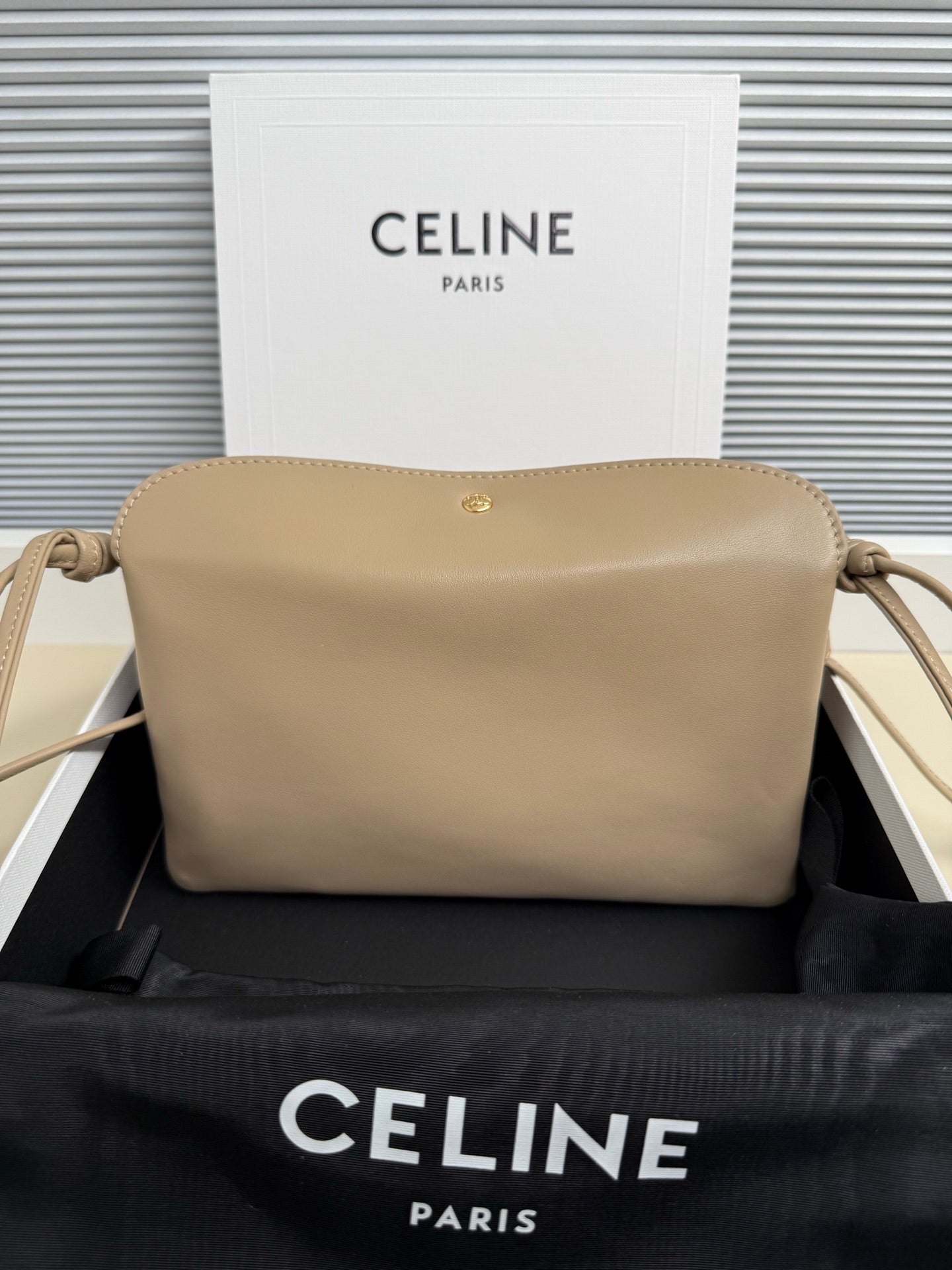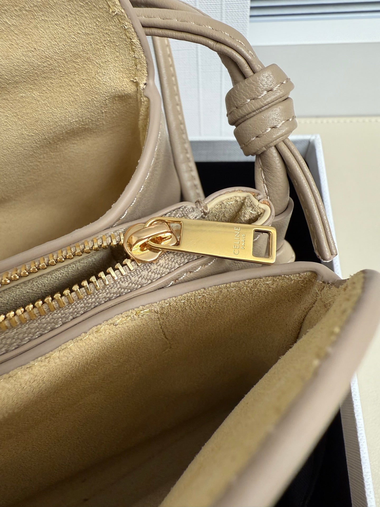 CELINE 25S TRIO FLAP 22MM IN DARK BEIGE SMOOTH LAMBSKIN GOLD HARDWARE