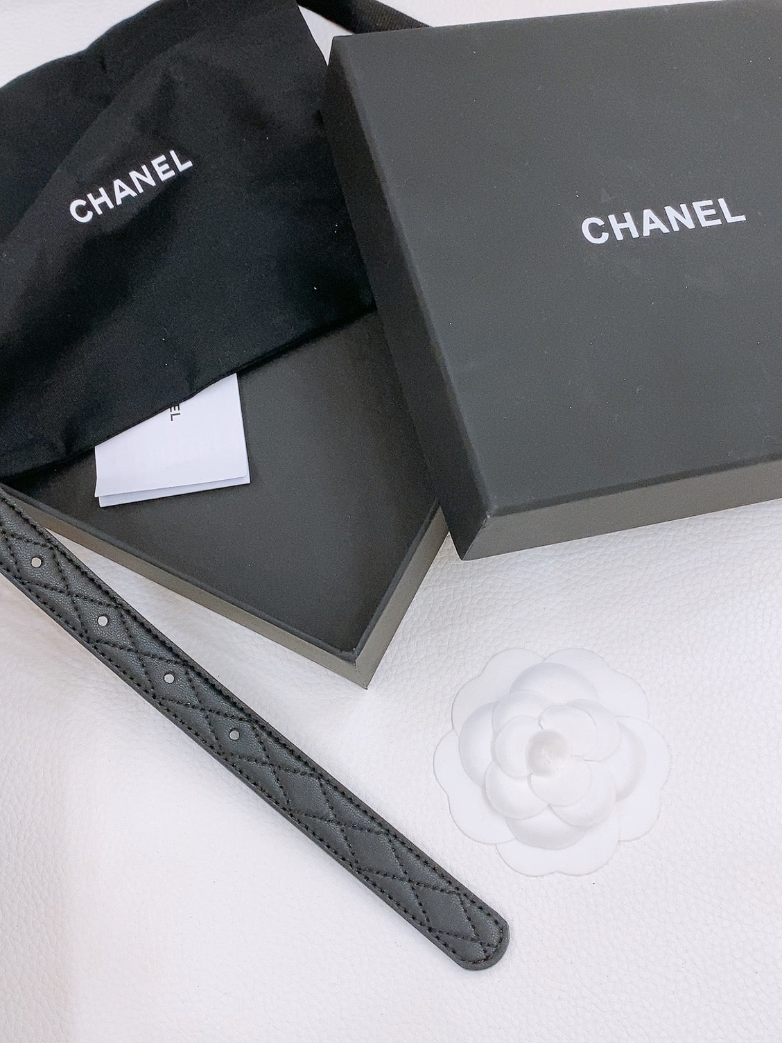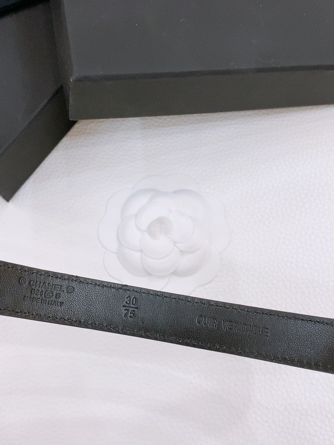 DOUBLE C BELT 20MM IN BLACK CALFSKIN WITH QUILTED STITCHING AND SPIRAL GOLD BUCKLE