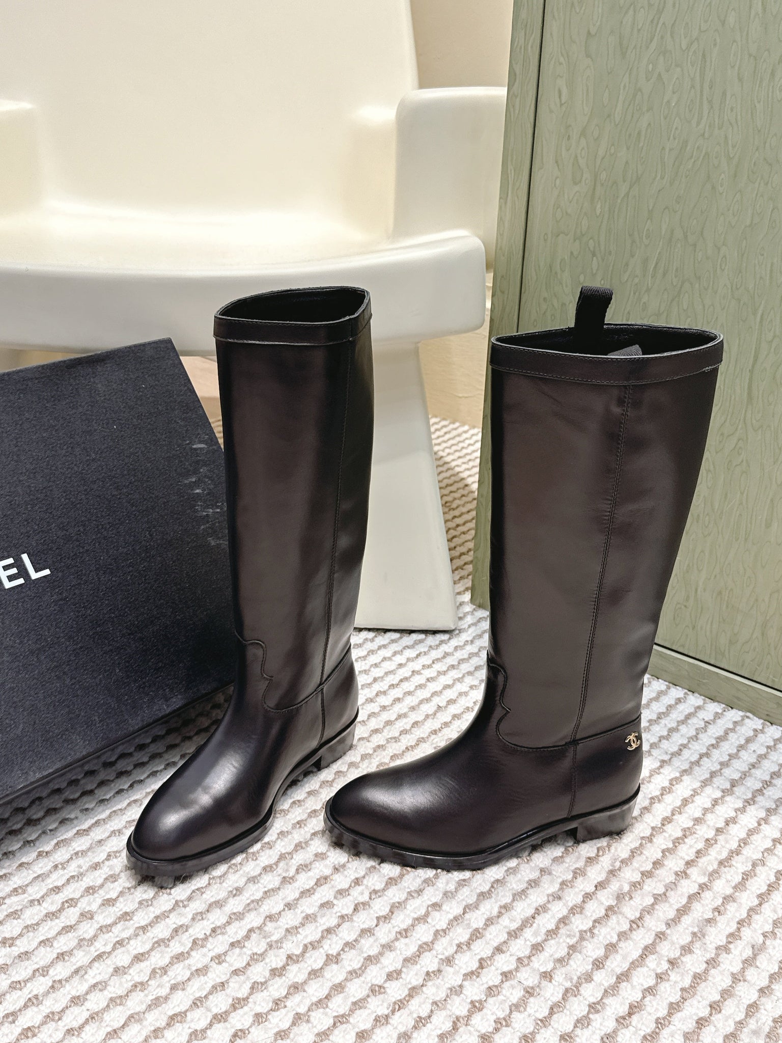 CHANEL 25S KNEE-HIGH BOOTS IN BLACK CALFSKIN