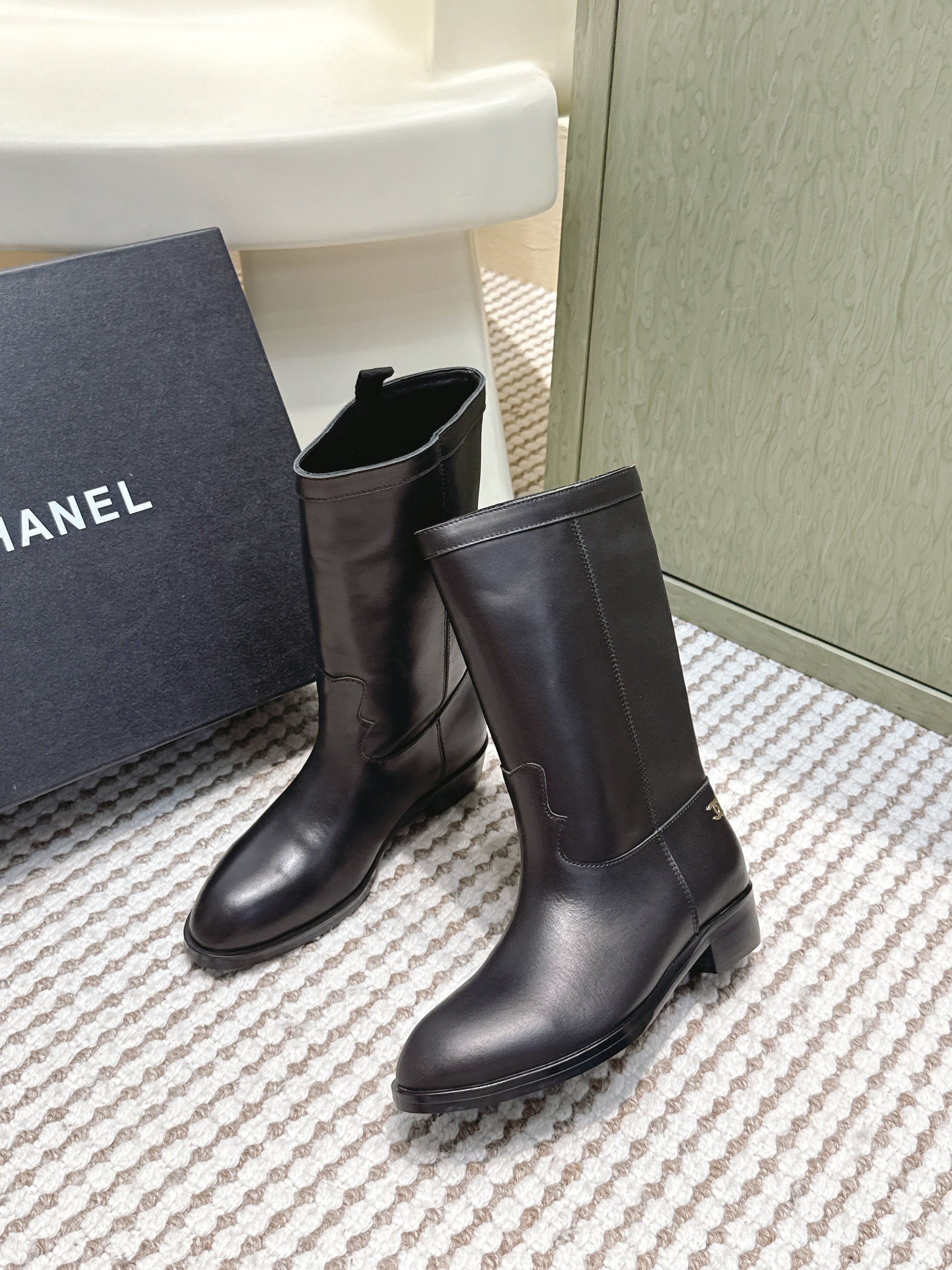 CHANEL 25S MID-CALF BOOTS IN BLACK CALFSKIN