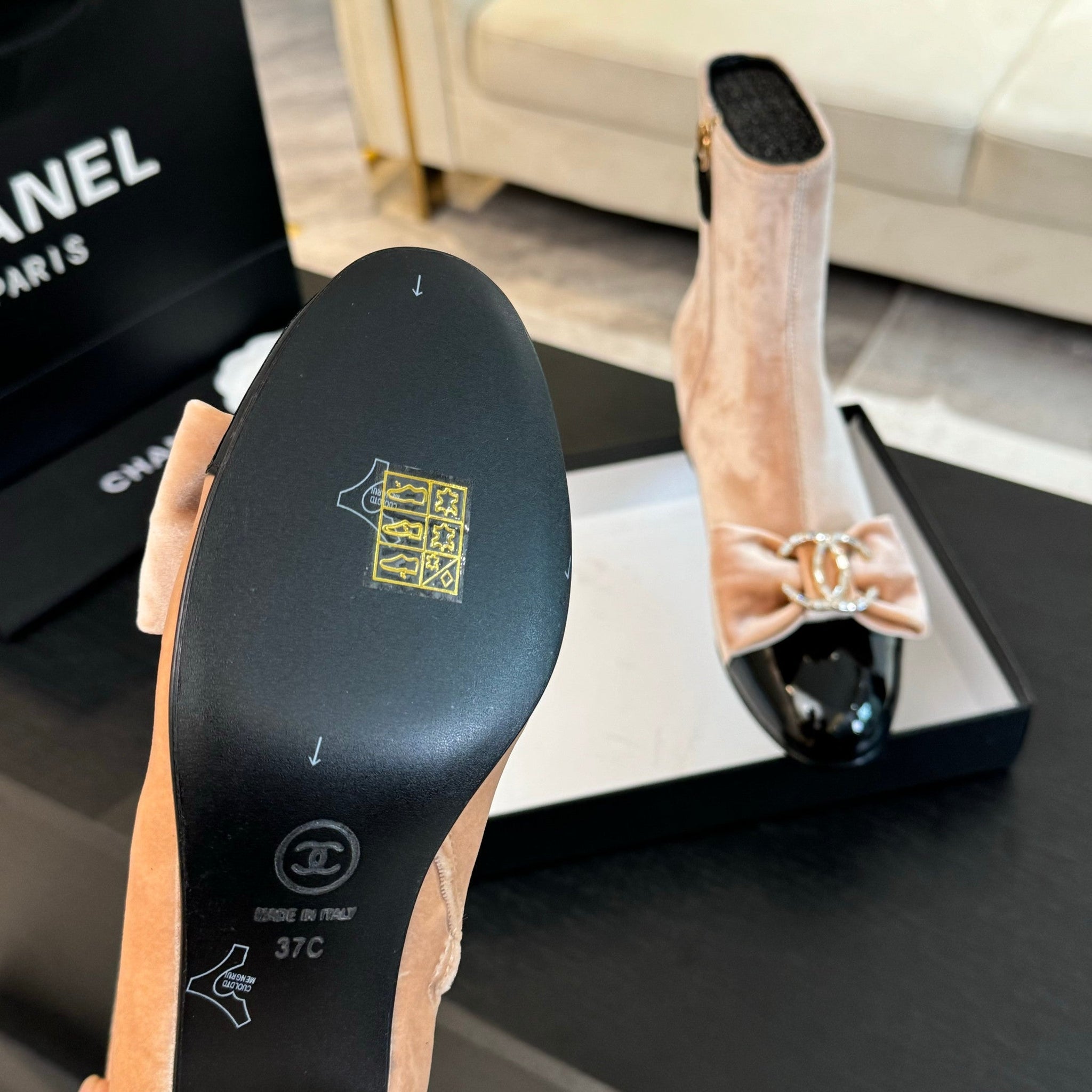 SHORT BOOTS IN PEACH PINK VELVET AND BLACK LAMBSKIN