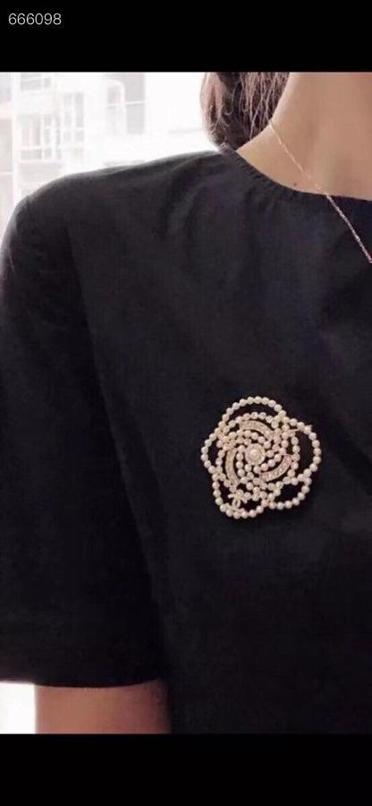 HOLIDAY SNOWFLAKE BROOCH IN WHITE PEARL AND CRYSTAL