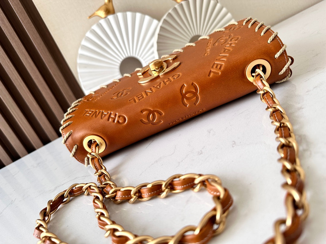 CHANEL 25S FLAP BAG 34 IN BROWN CALFSKIN WITH GOLD HARDWARE