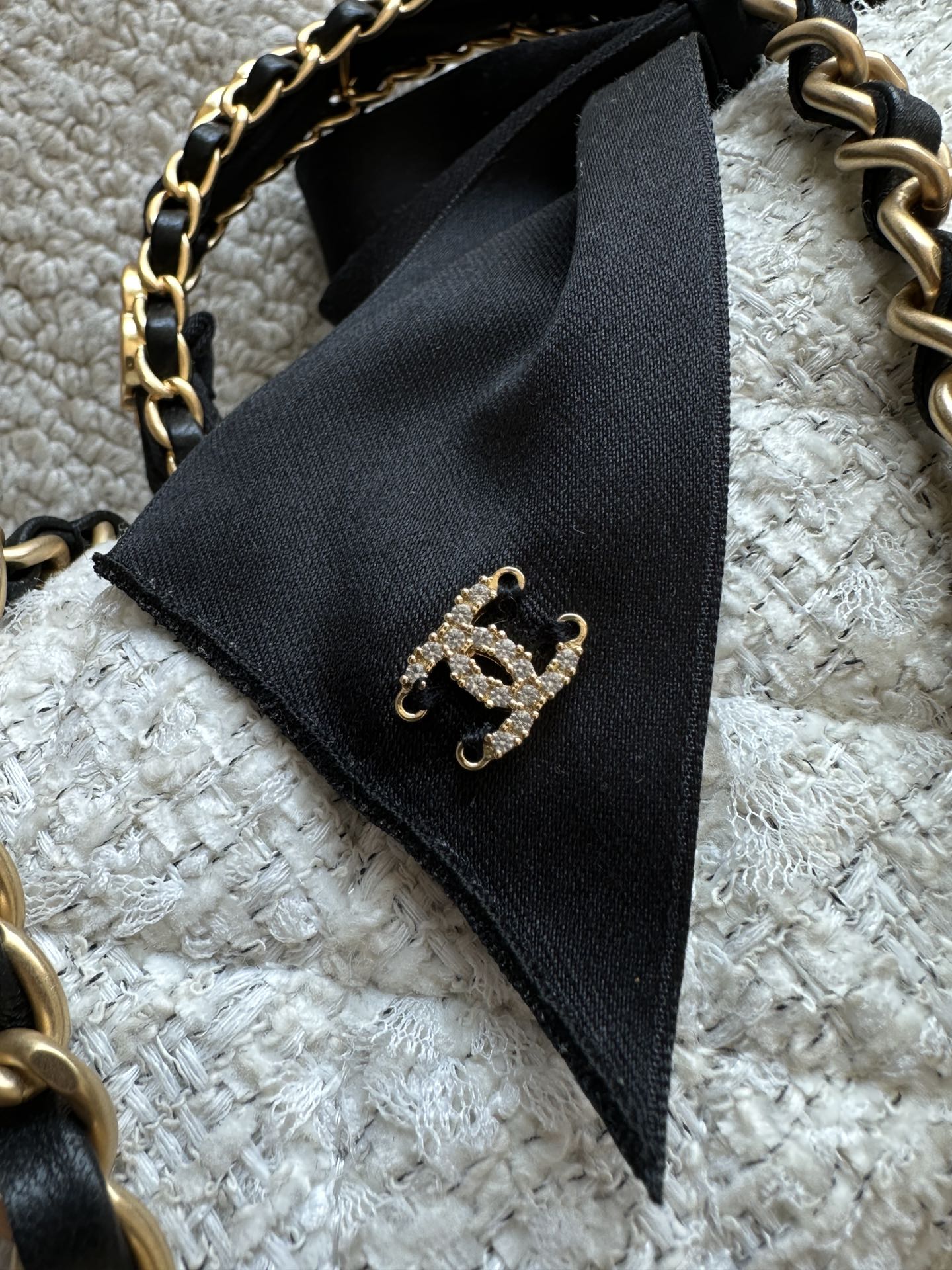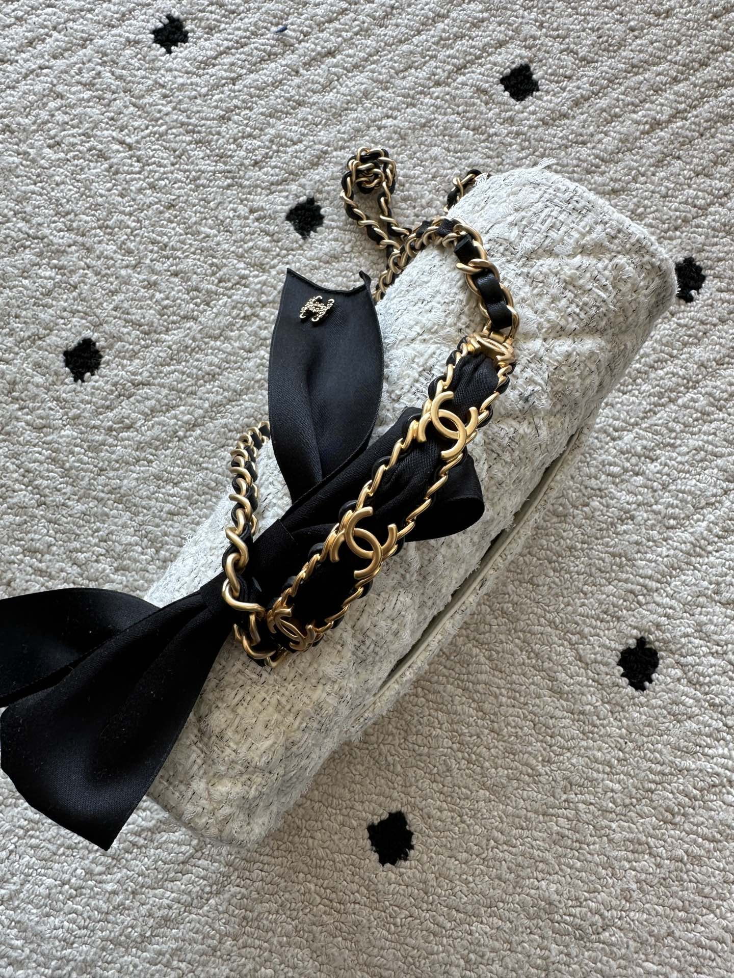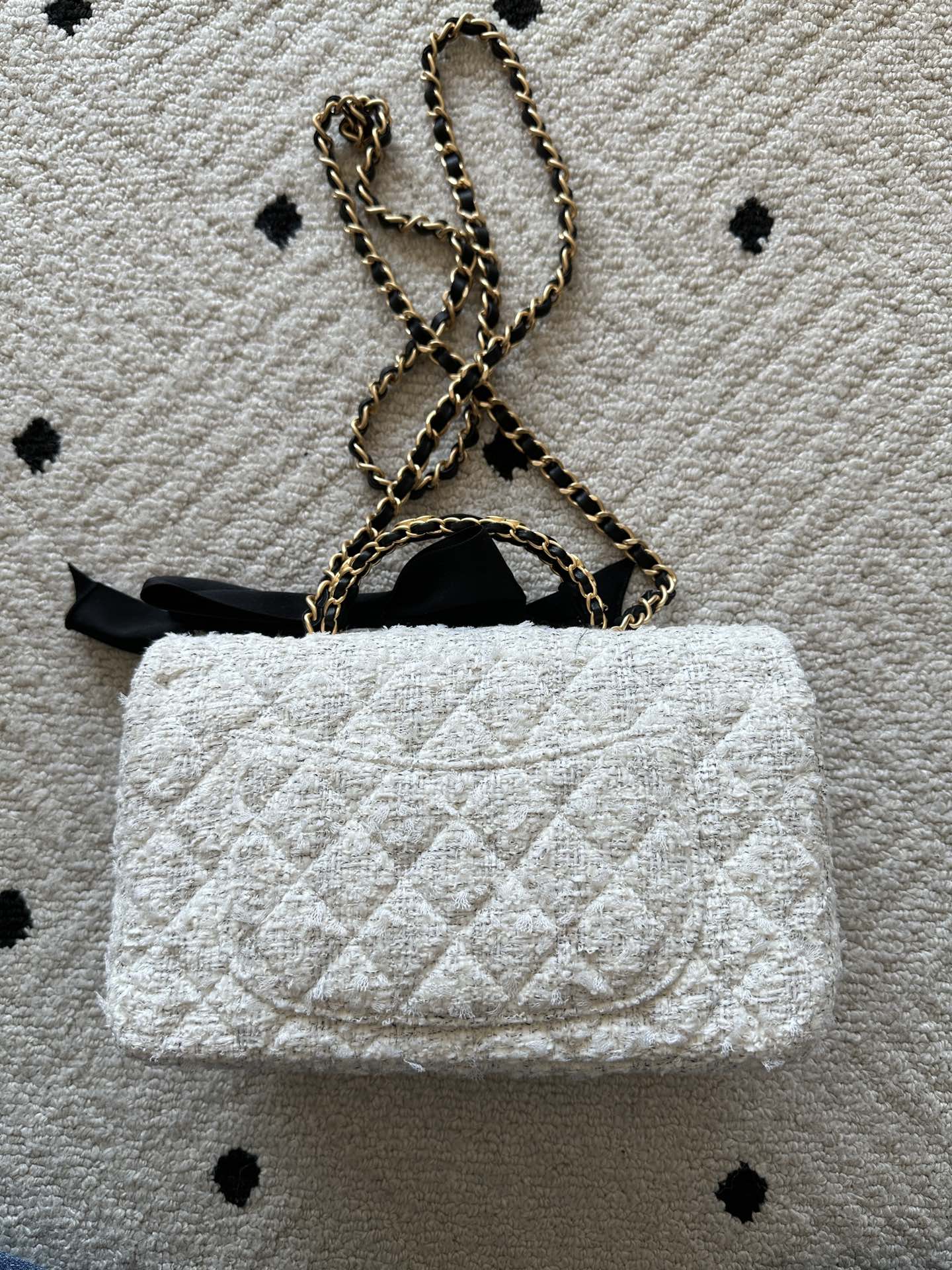 CHANEL 25S MINI FLAP BAG 23 IN CREAM WHITE TWEED WITH GOLD HARDWARE