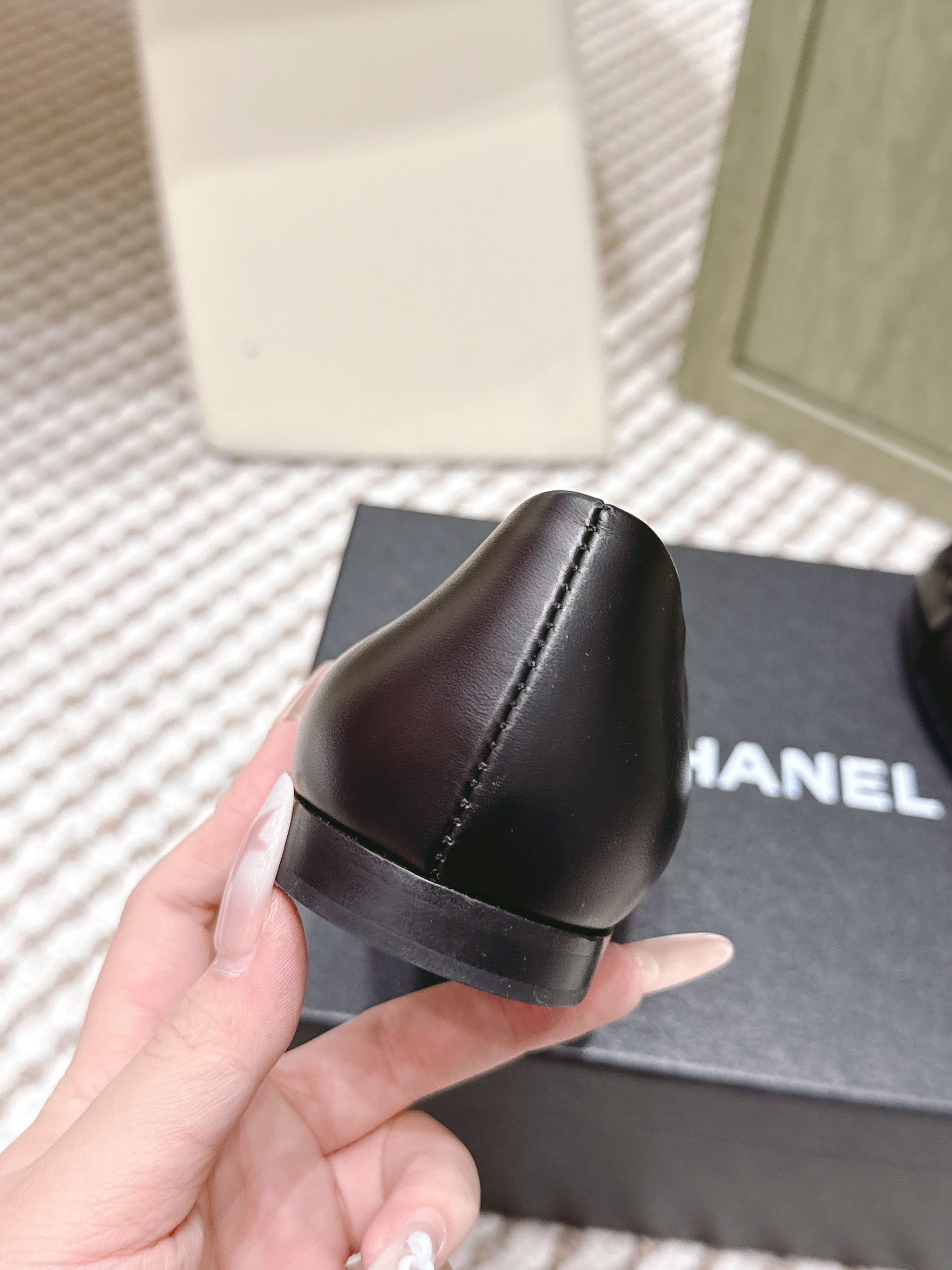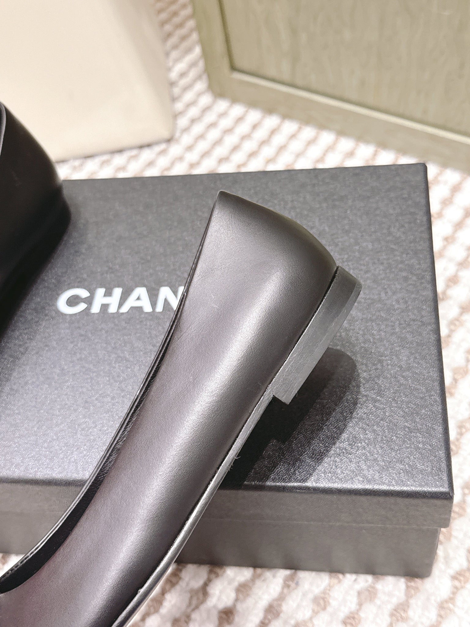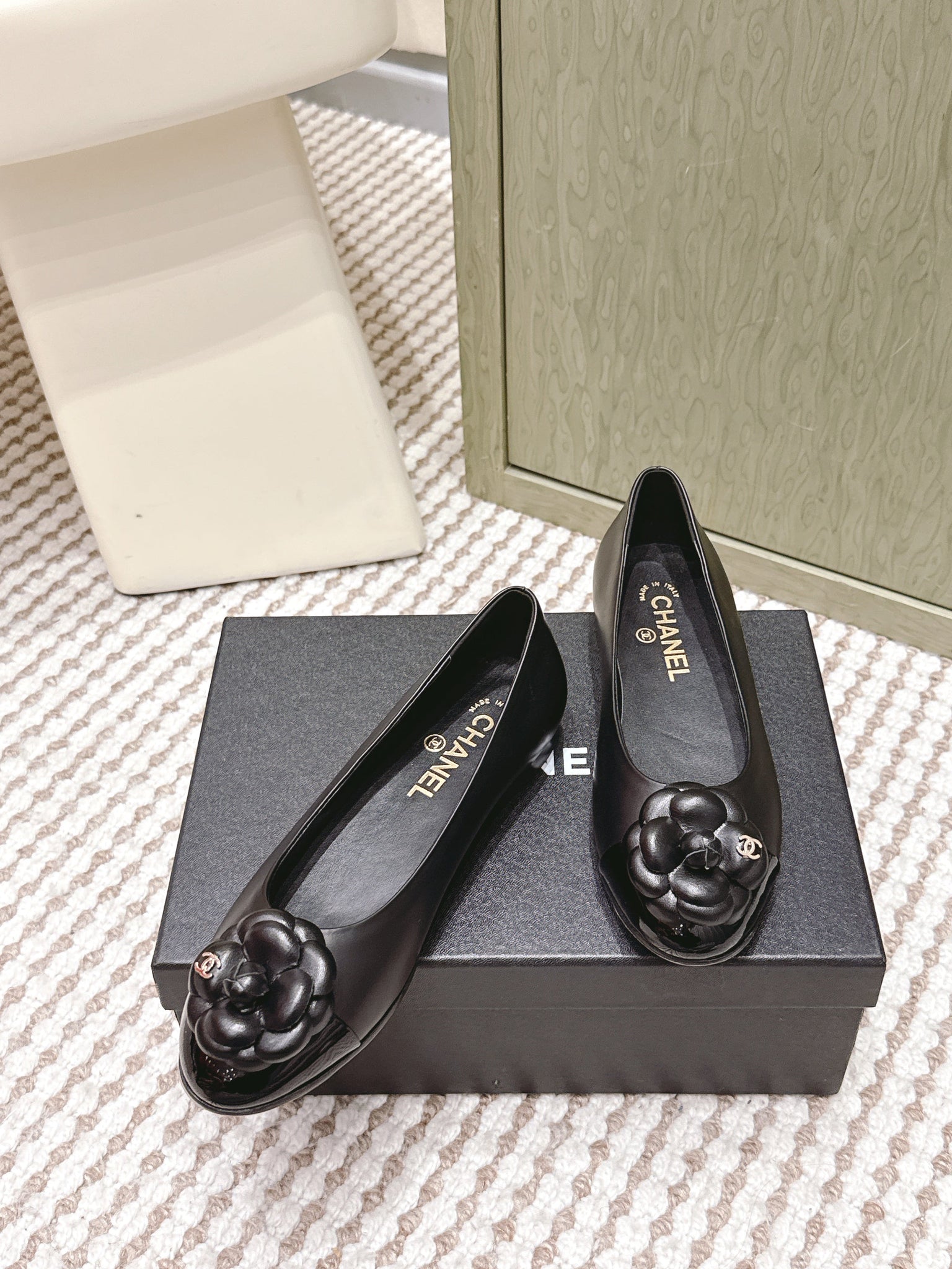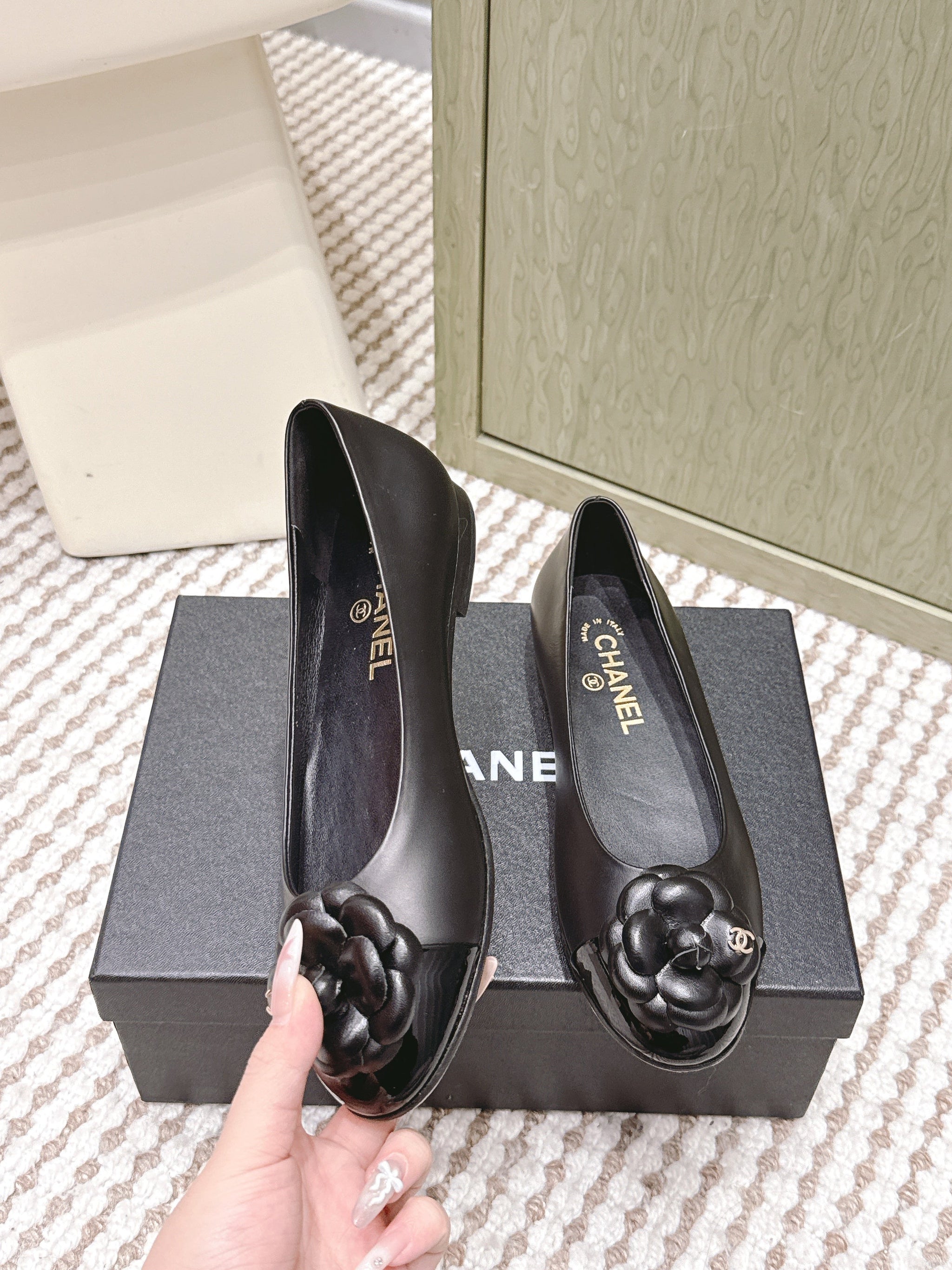 CHANEL 25S BALLET FLAT ROUND TOE IN BLACK SHEEPSKIN WITH CAMELLIA