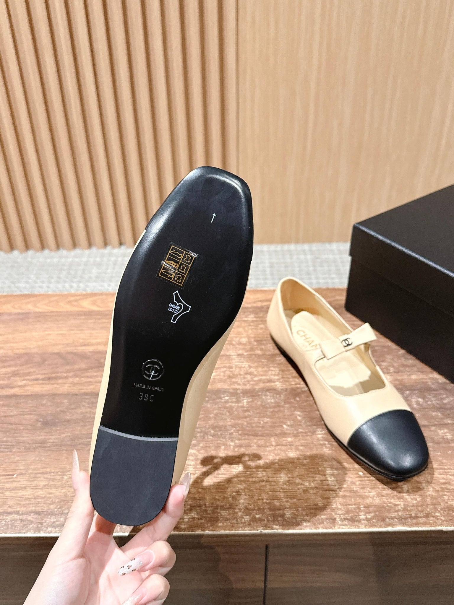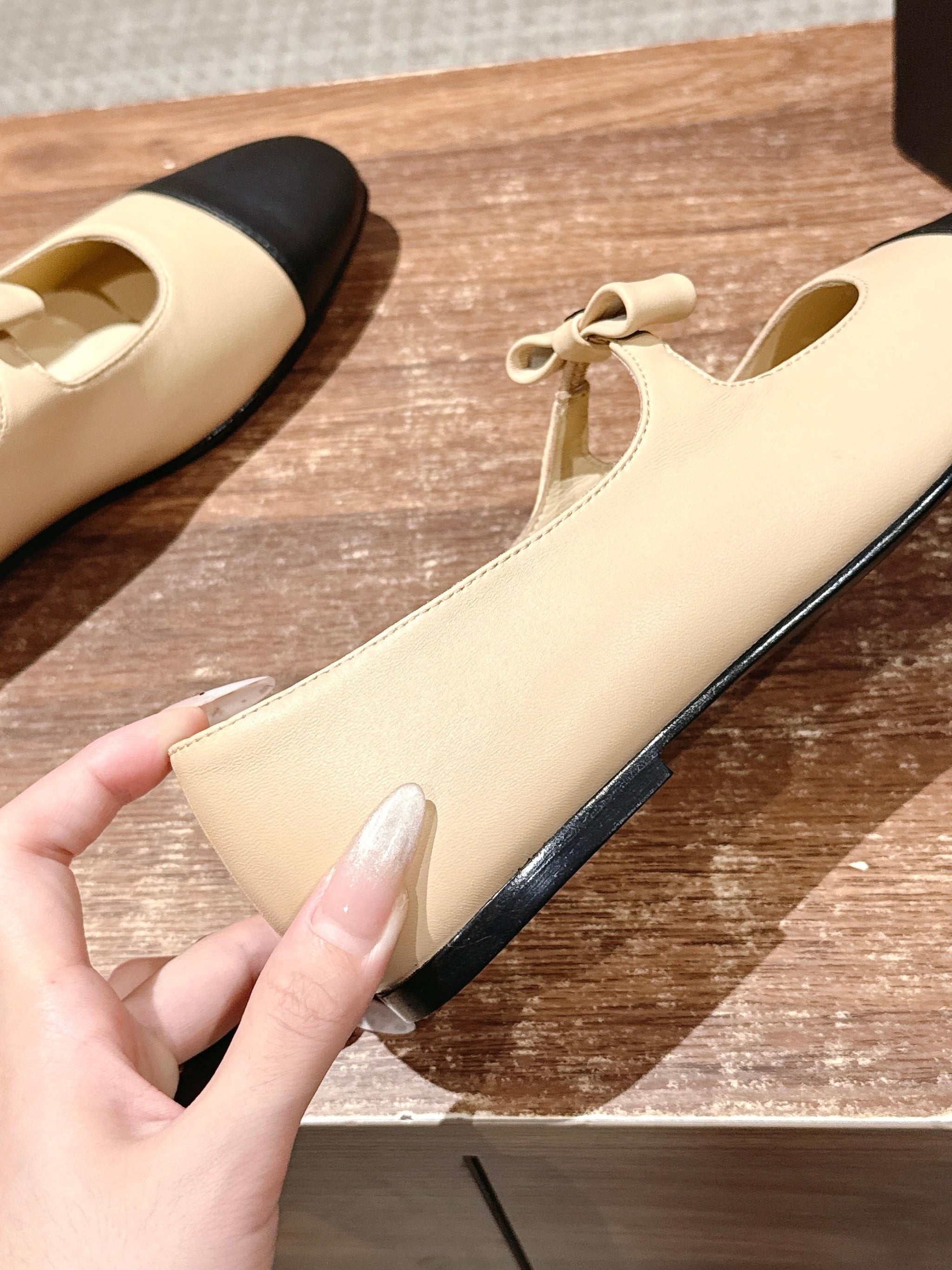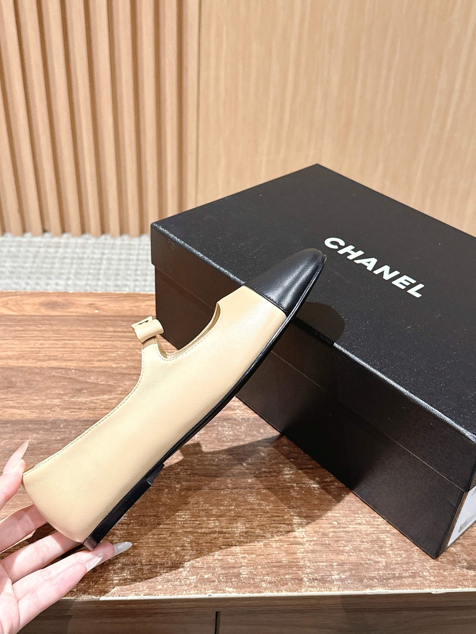 CHANEL 25S BALLET MARY JANES BEIGE AND BLACK IN CALFSKIN
