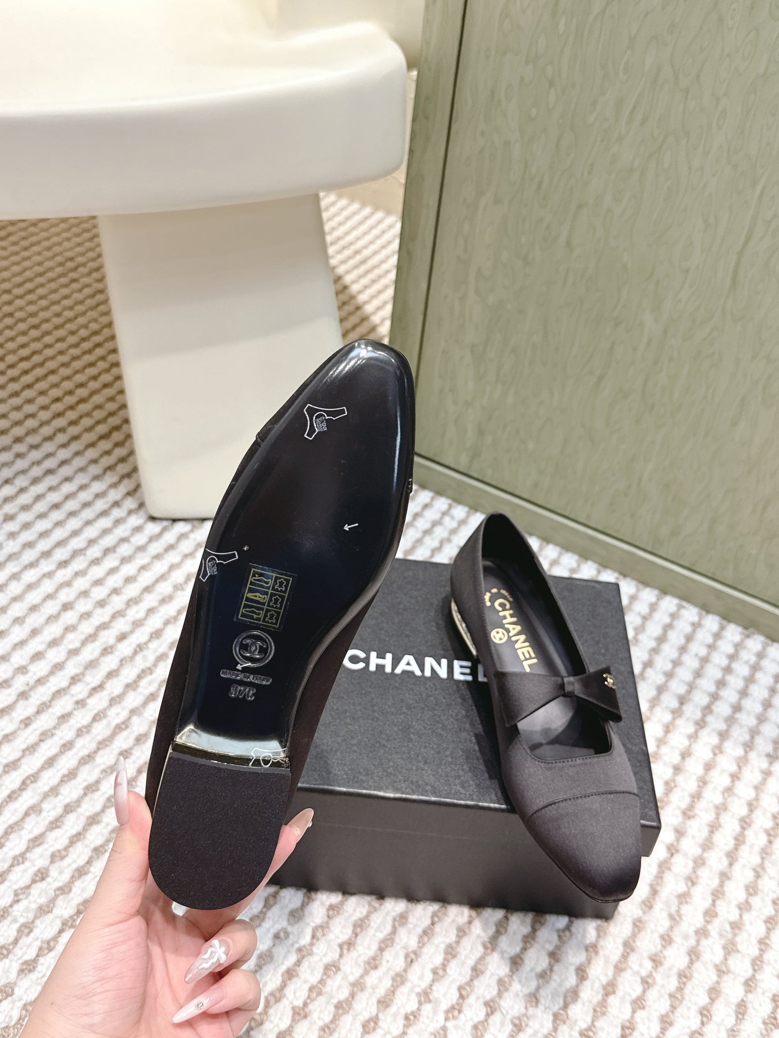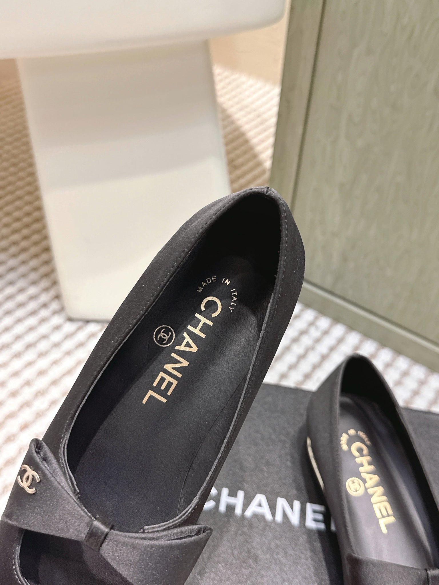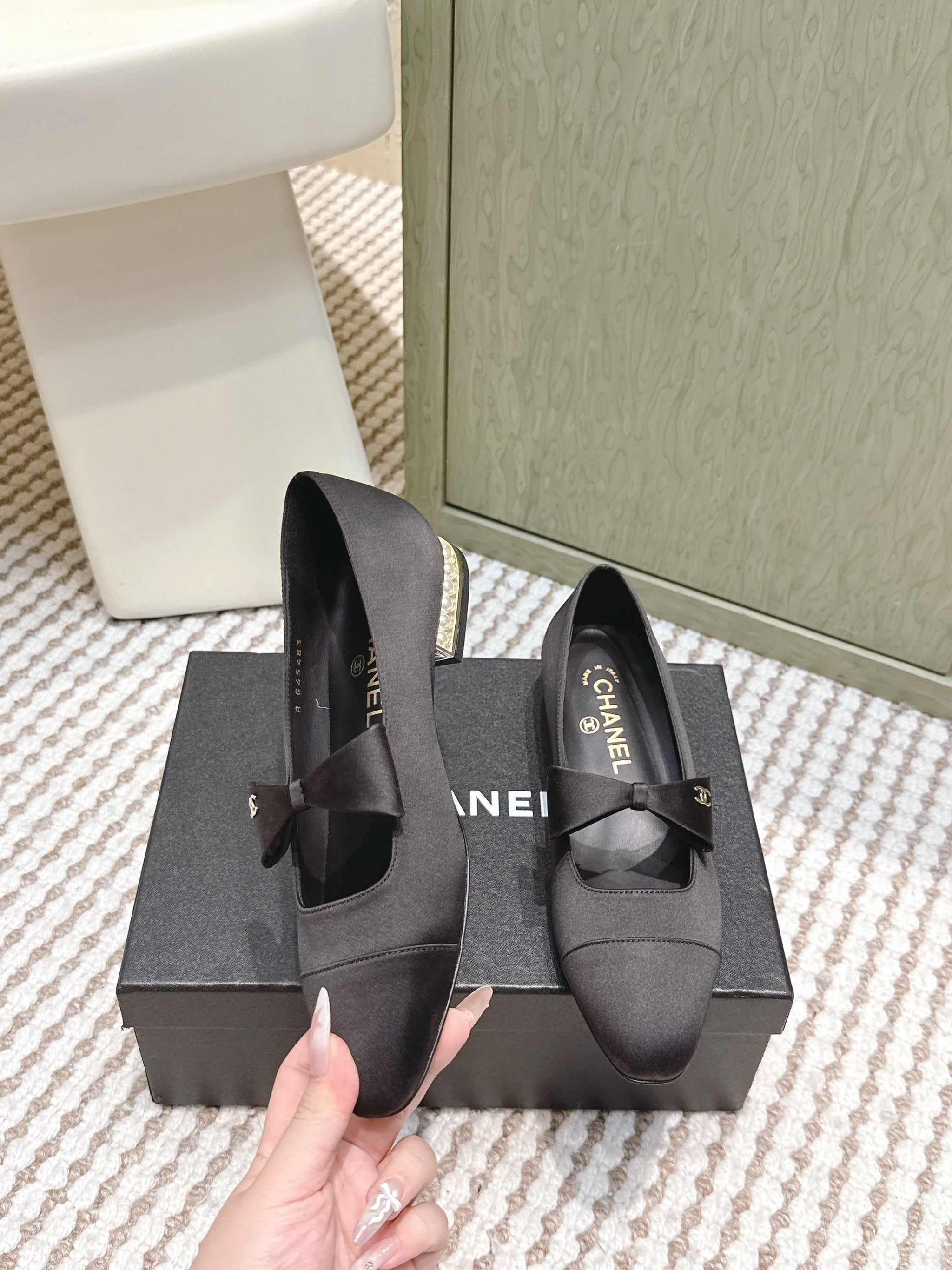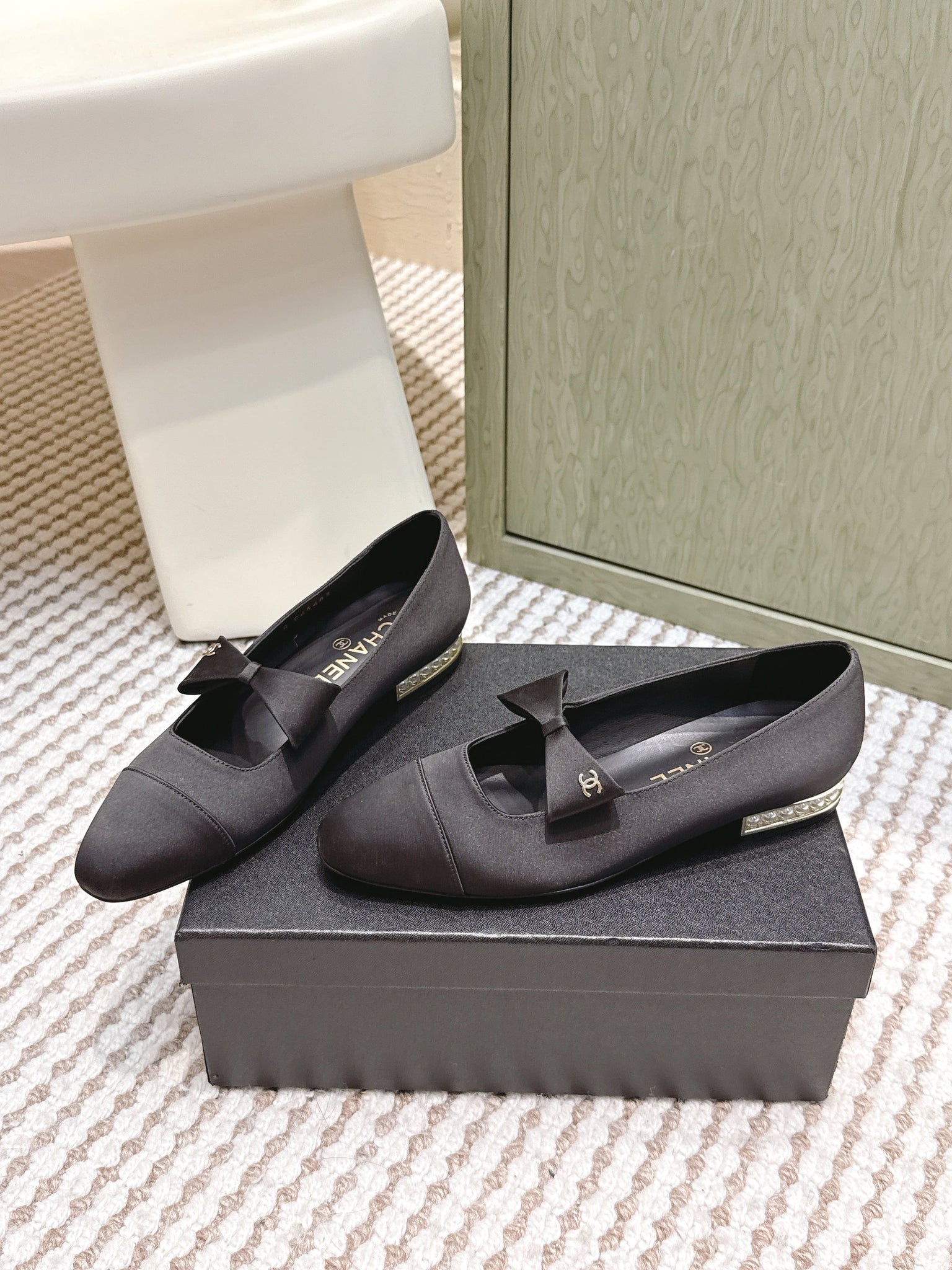 CHANEL 25S MARY JANE BALLET FLATS IN BLACK SILK WITH BOW