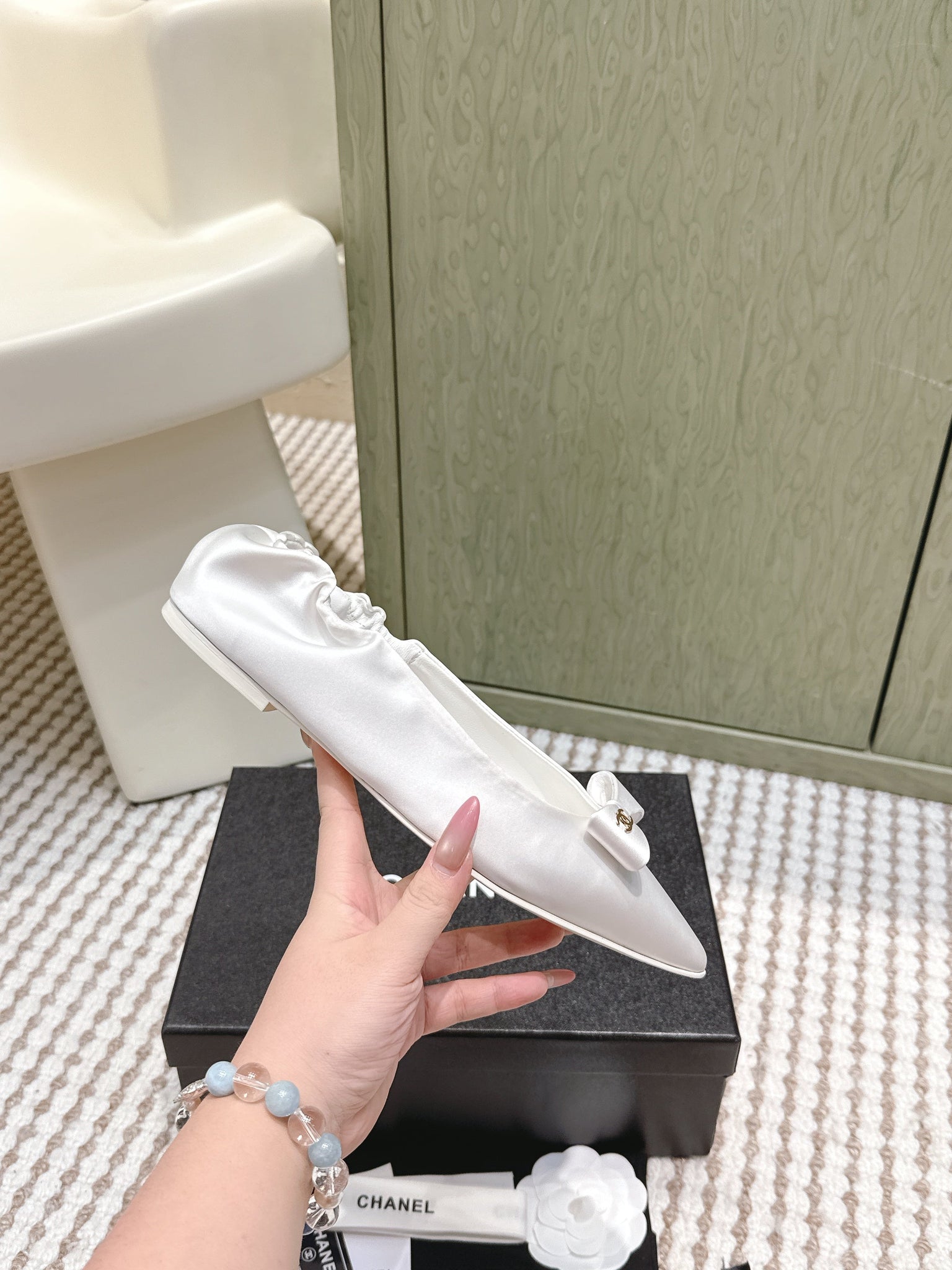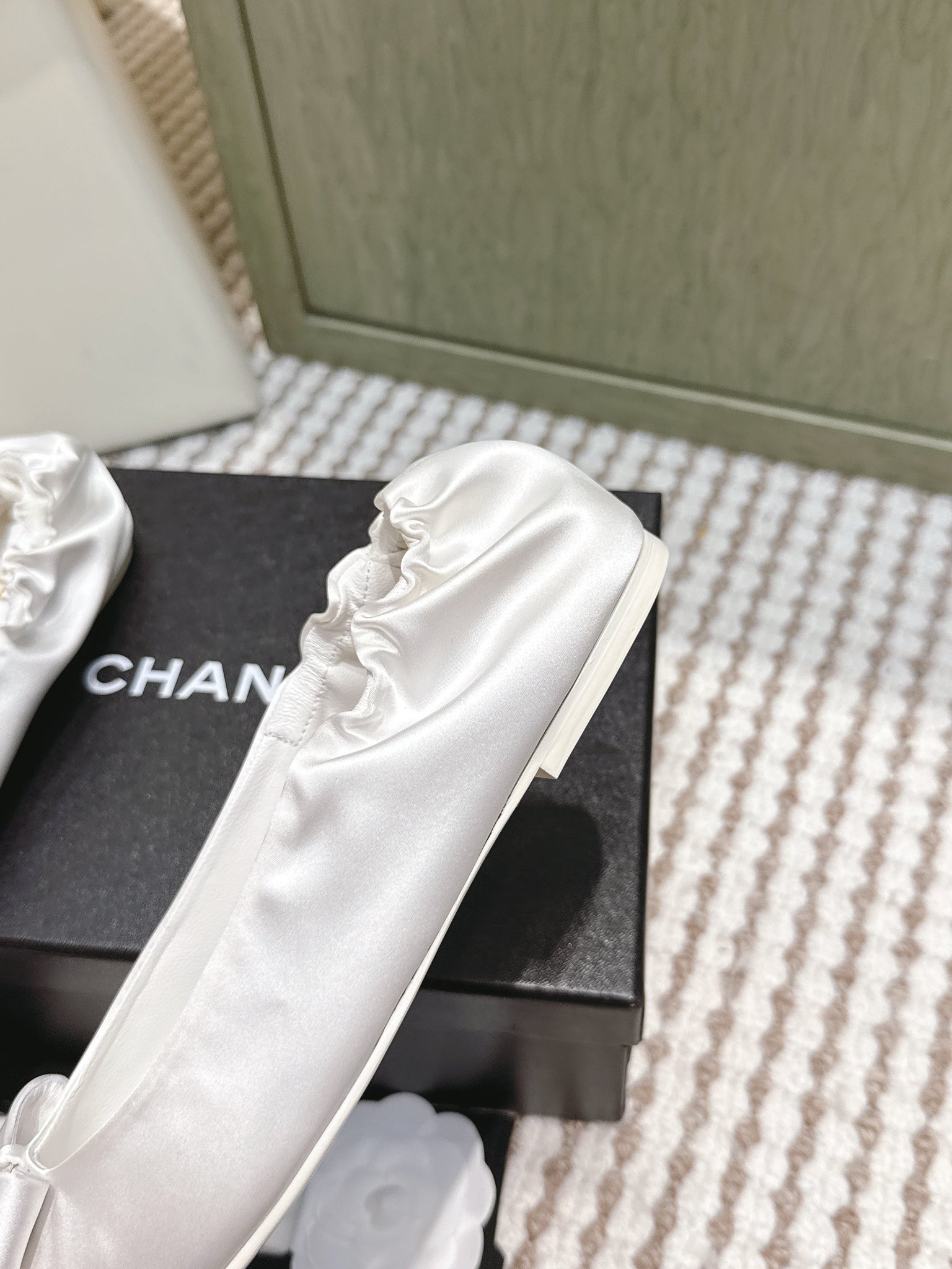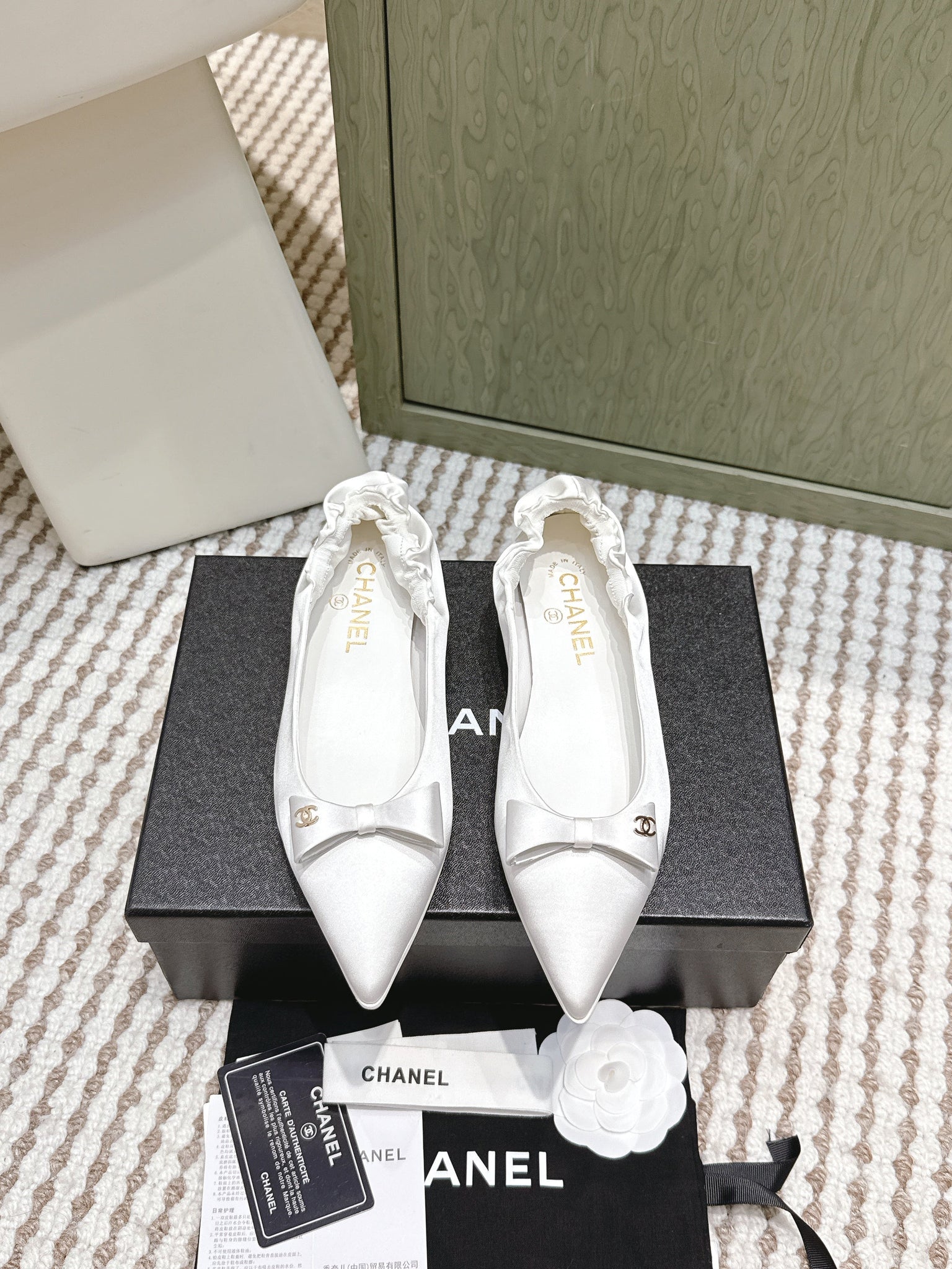 CHANEL 25S MARY JANE BALLET FLATS IN WHITE SILK SATIN
