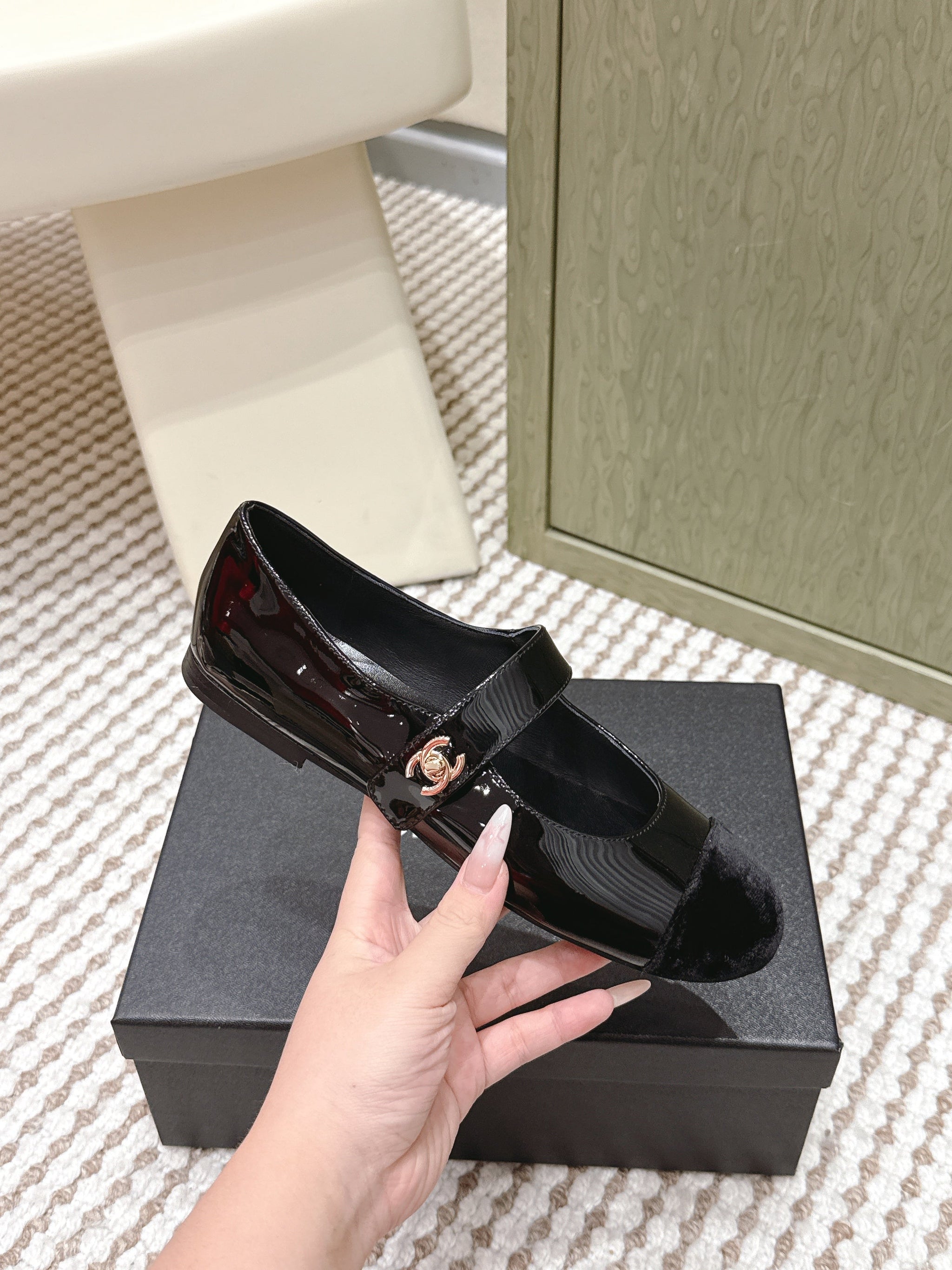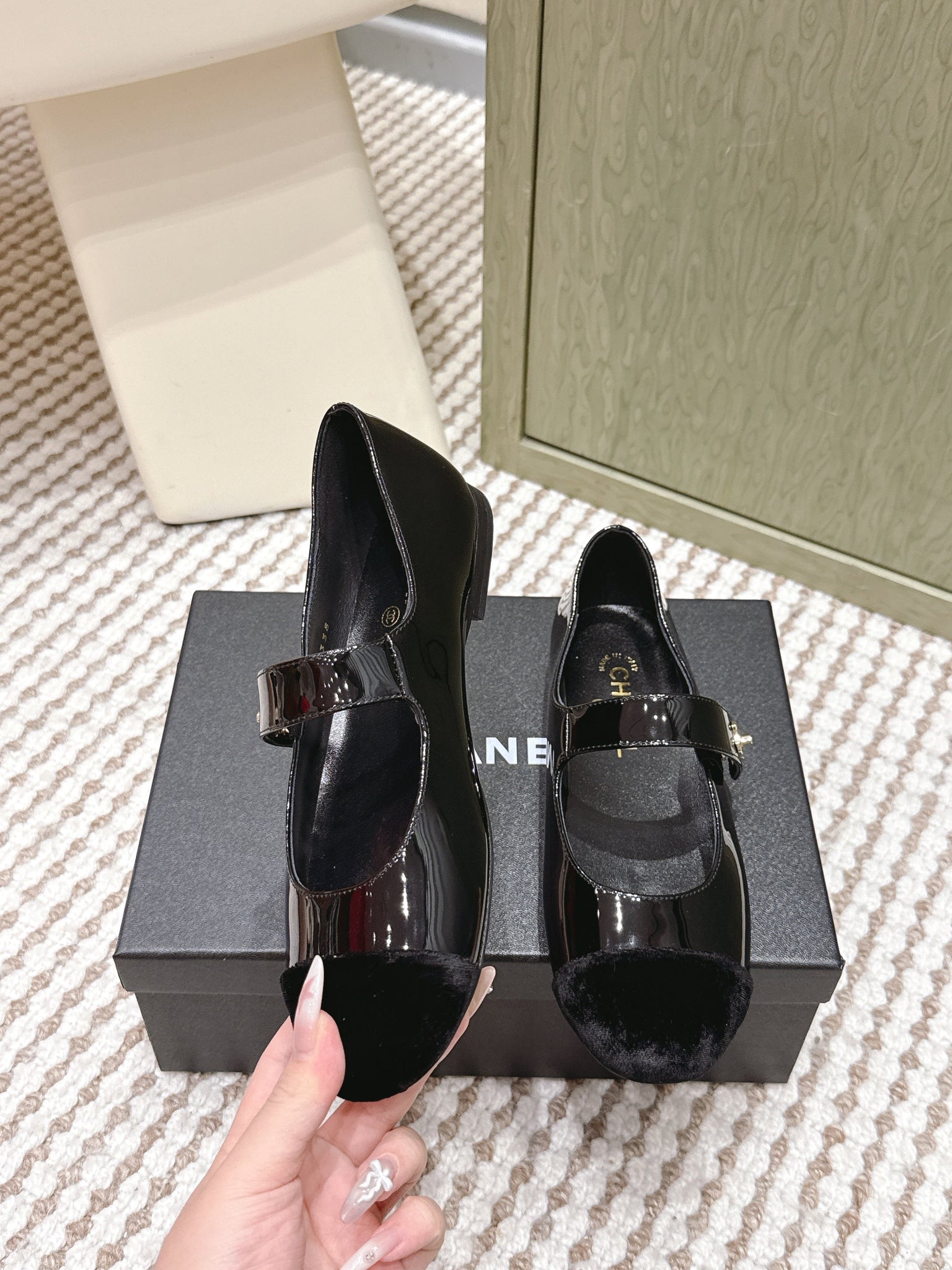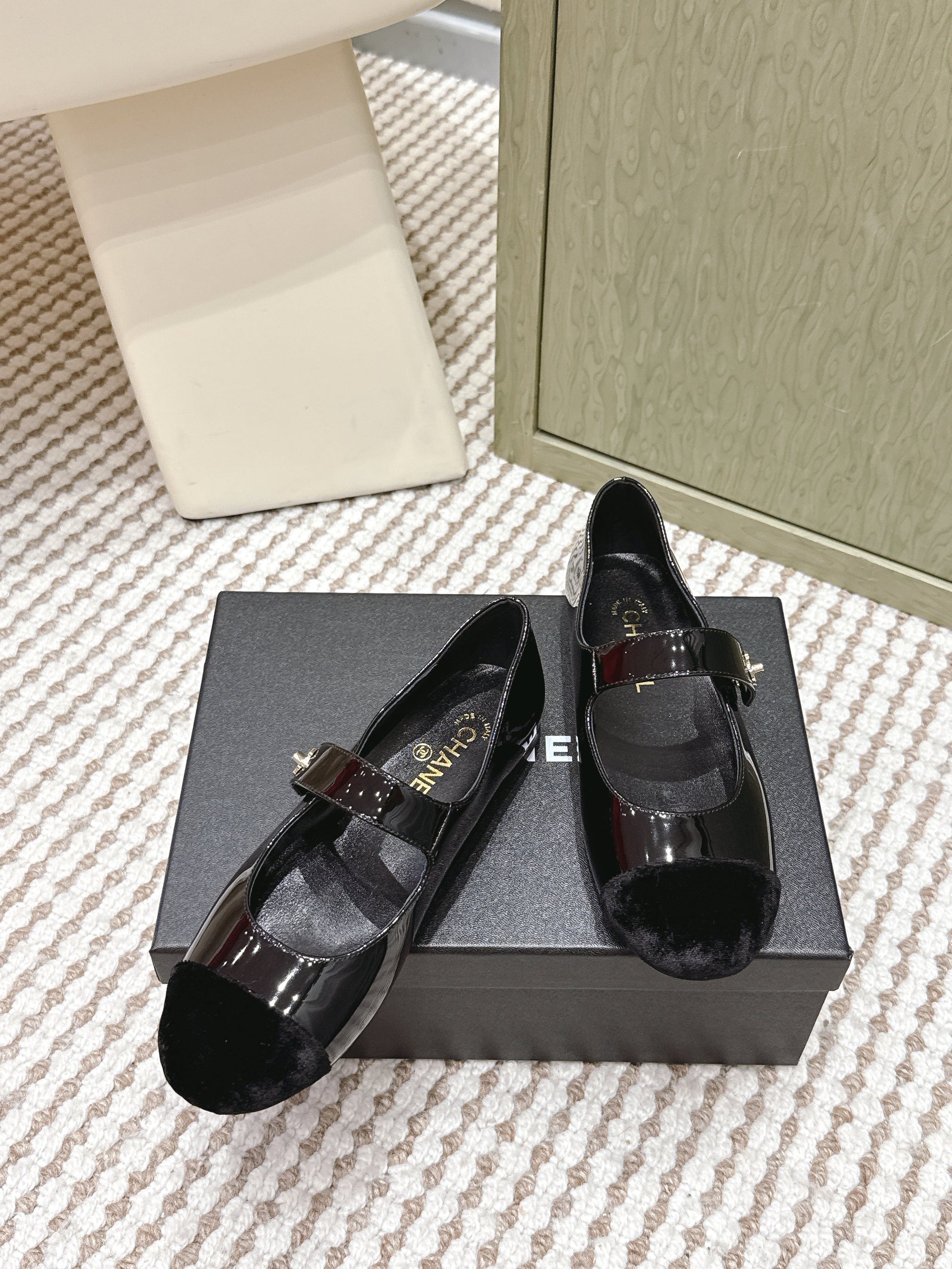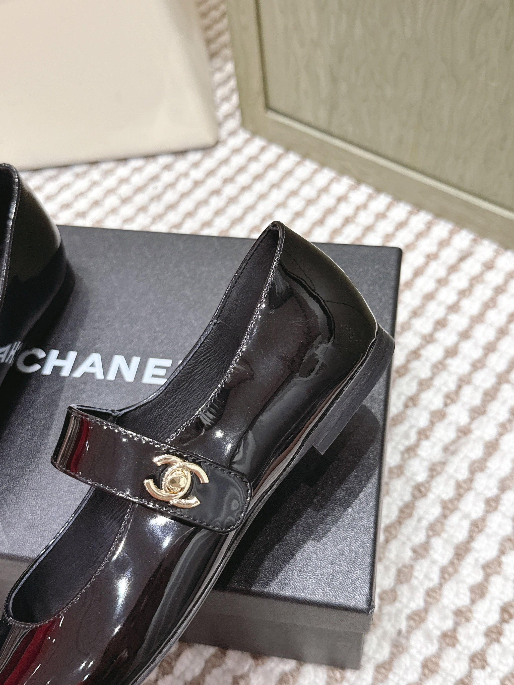 CHANEL 25S MARY JANE FLAT IN BLACK PATENT CALFSKIN WITH BLACK VELVET CAP TOE