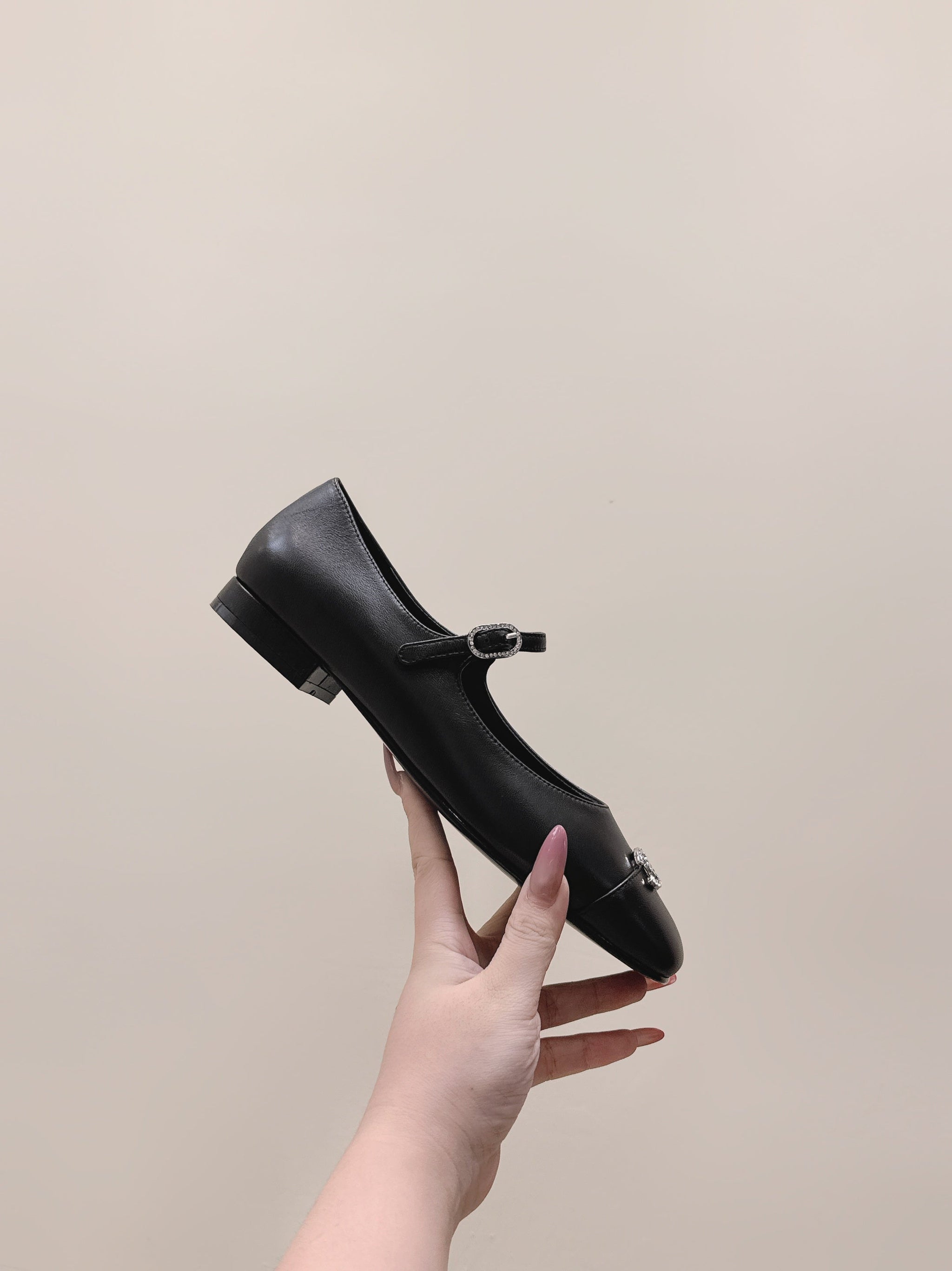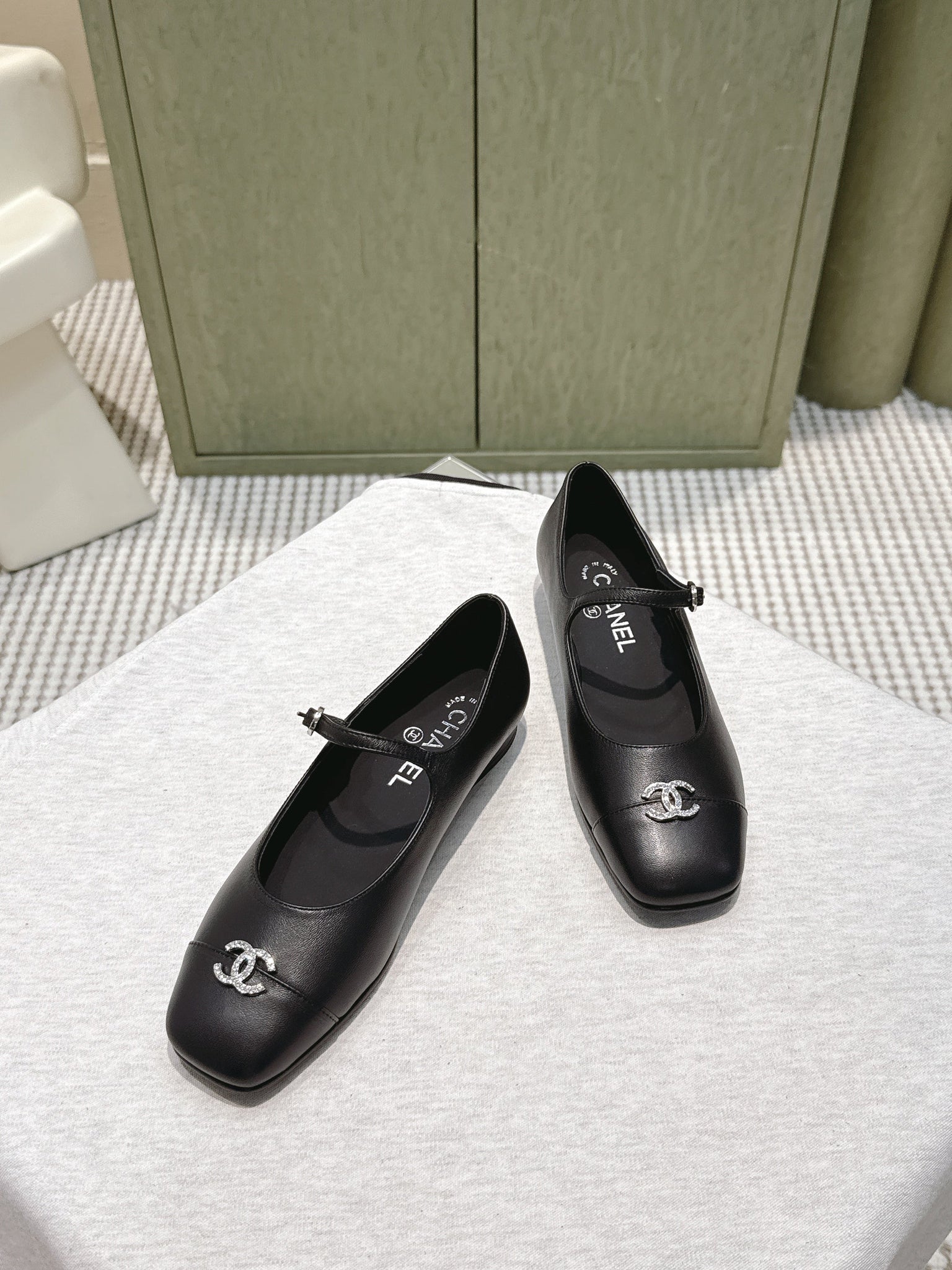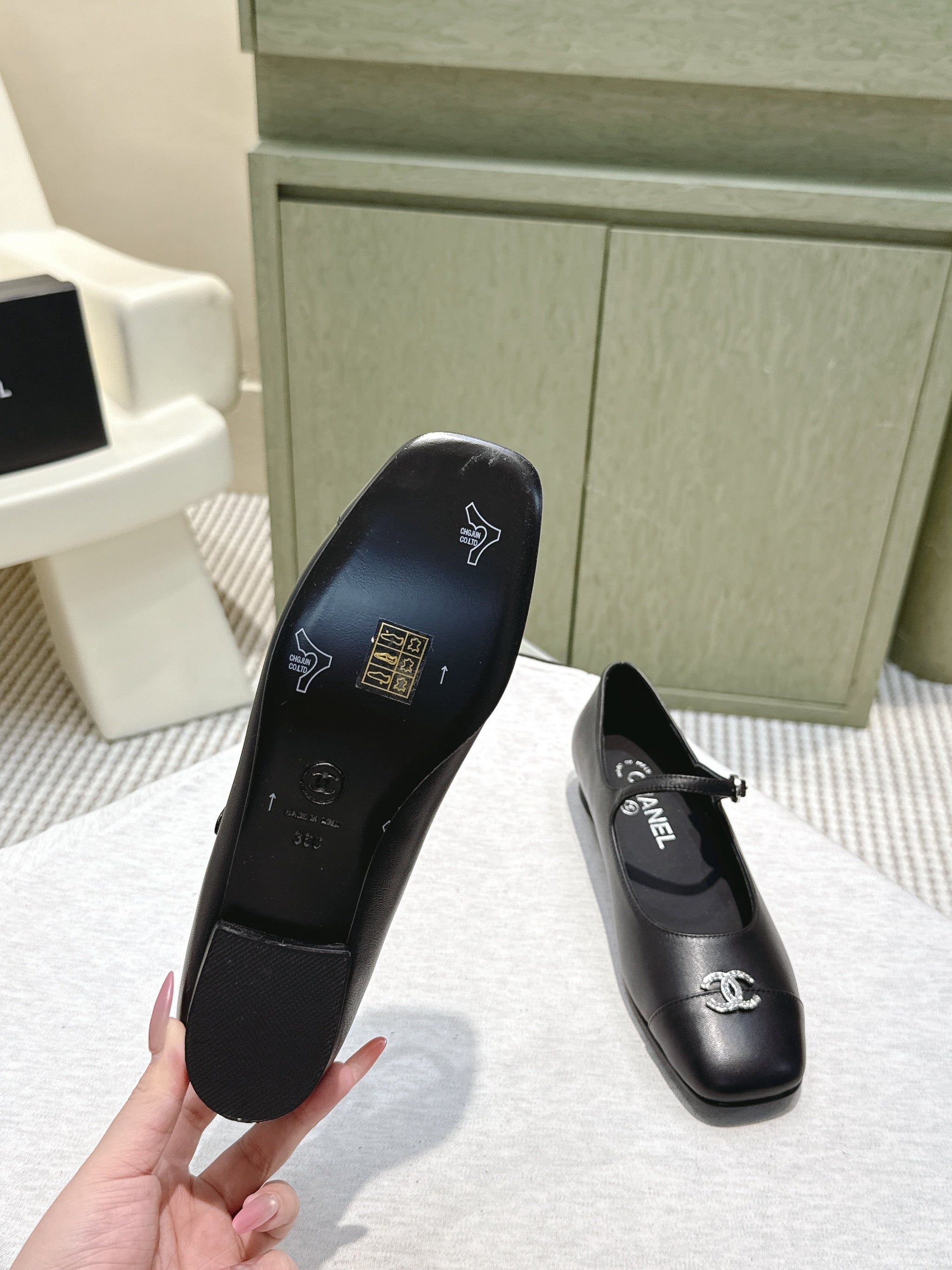 CHANEL 25S MARY JANE FLATS IN BLACK CALFSKIN SILVER HARDWARE