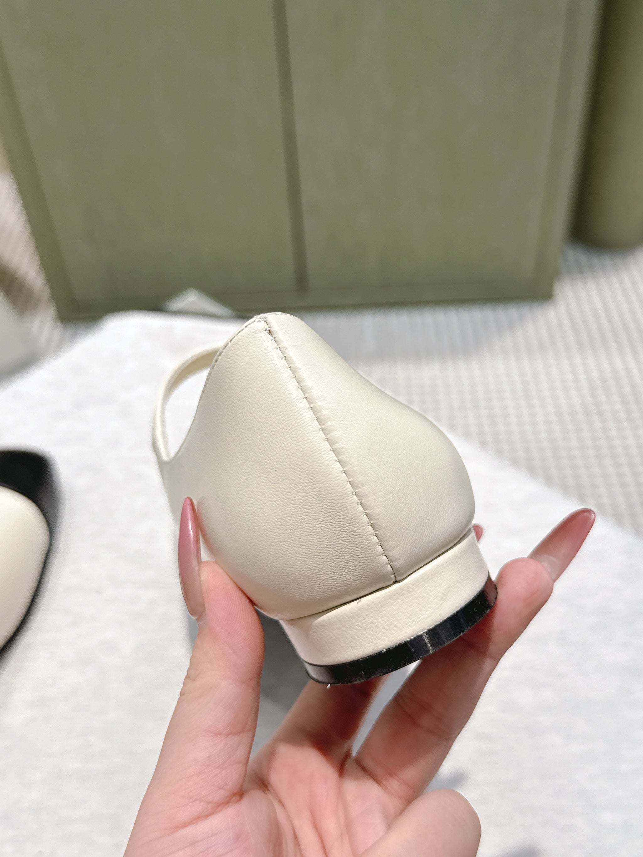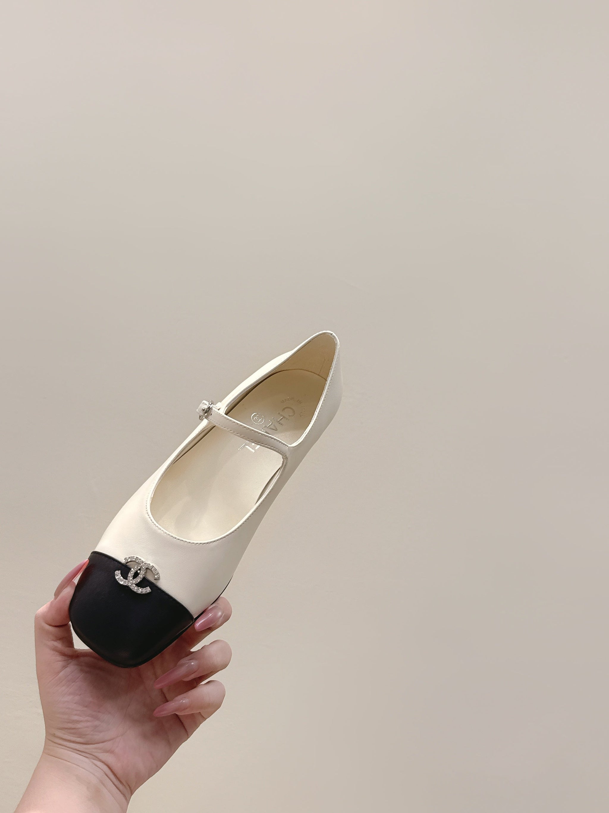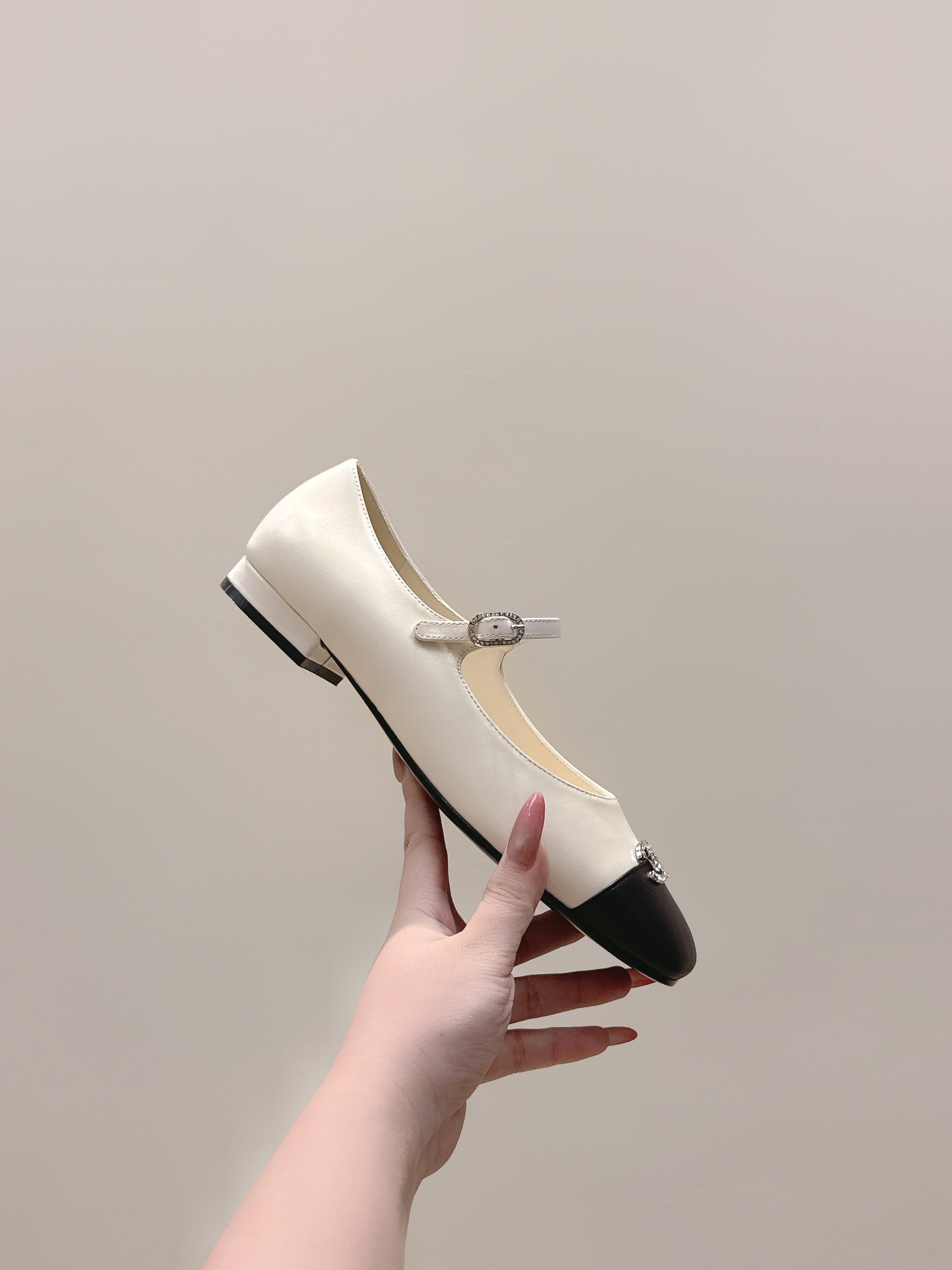 CHANEL 25S MARY JANE FLATS IN IVORY LAMBSKIN WITH BLACK CAP TOE SILVER HARDWARE