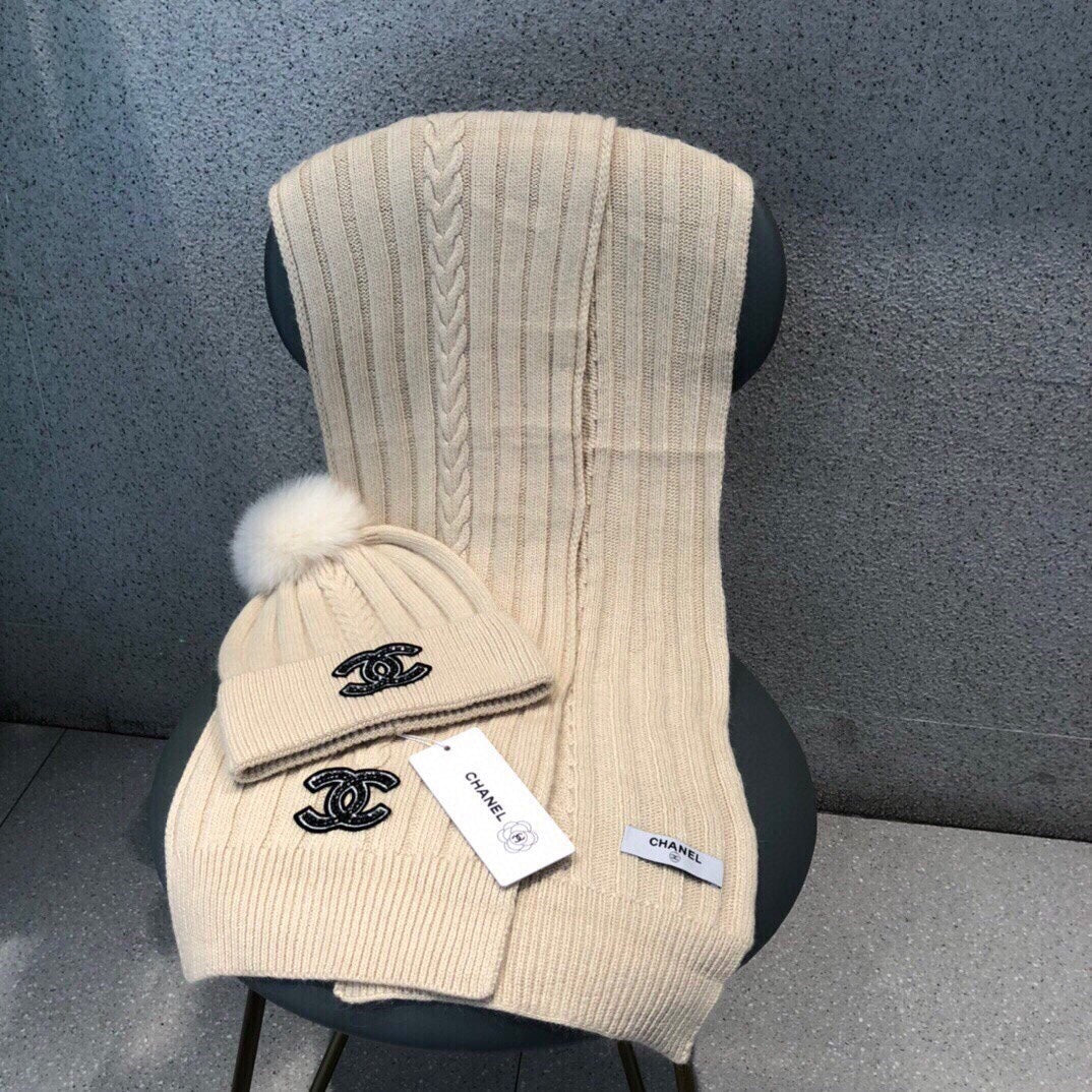 SET SCARF AND HAT IN BISQUE BEIGE WOOL 420821