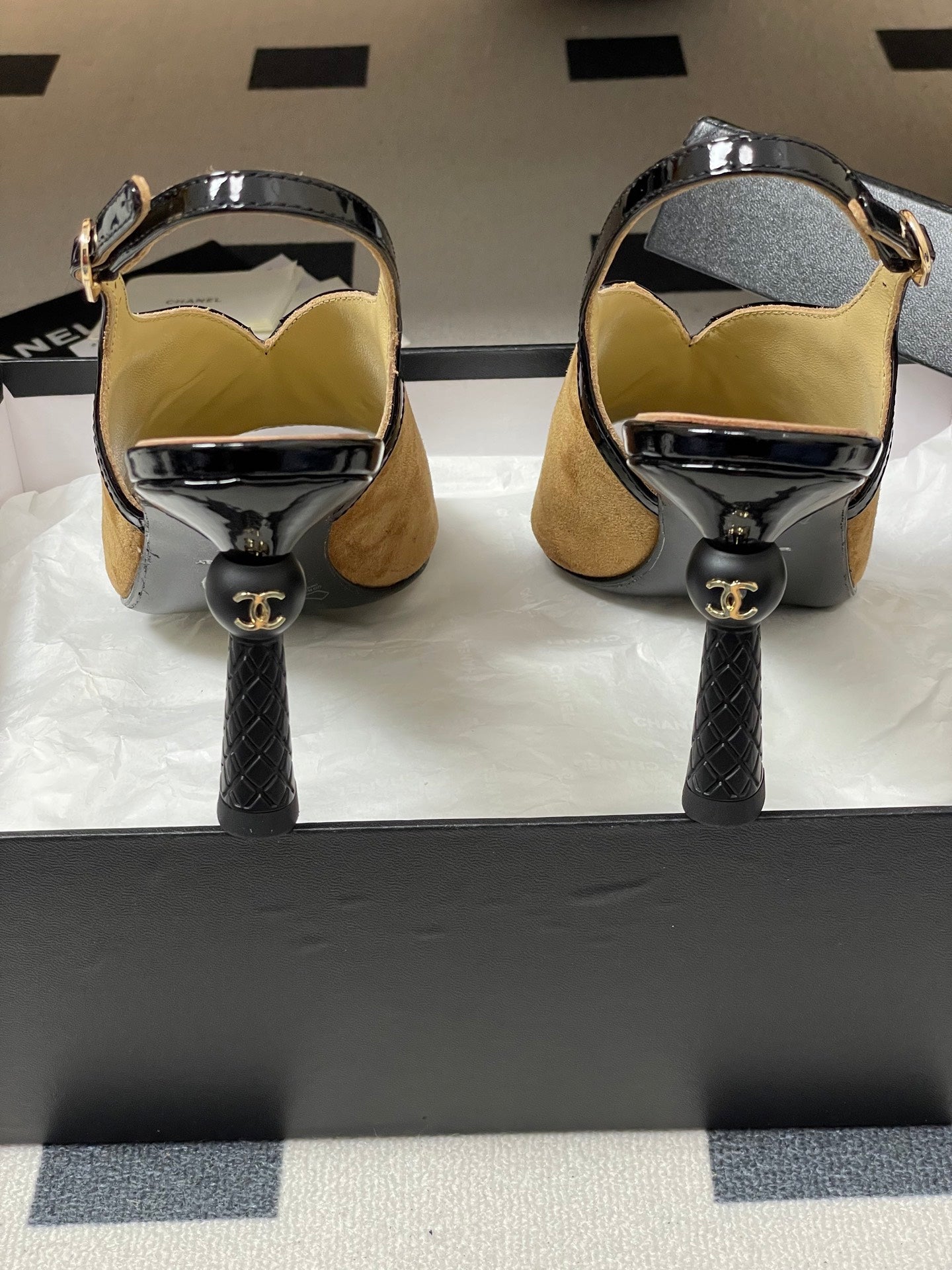 CC HIGH HEELS 85MM IN BROWN AND BLACK SUEDE