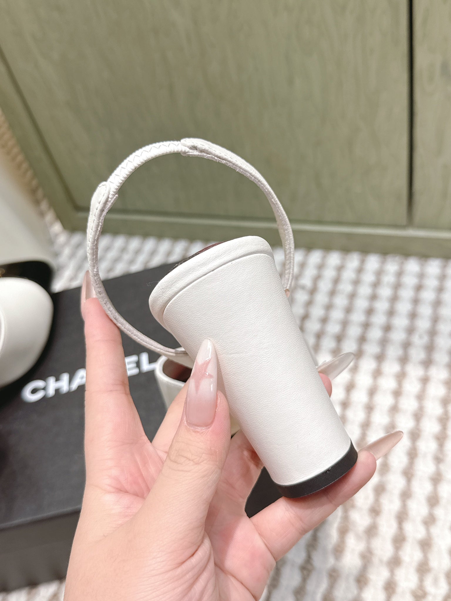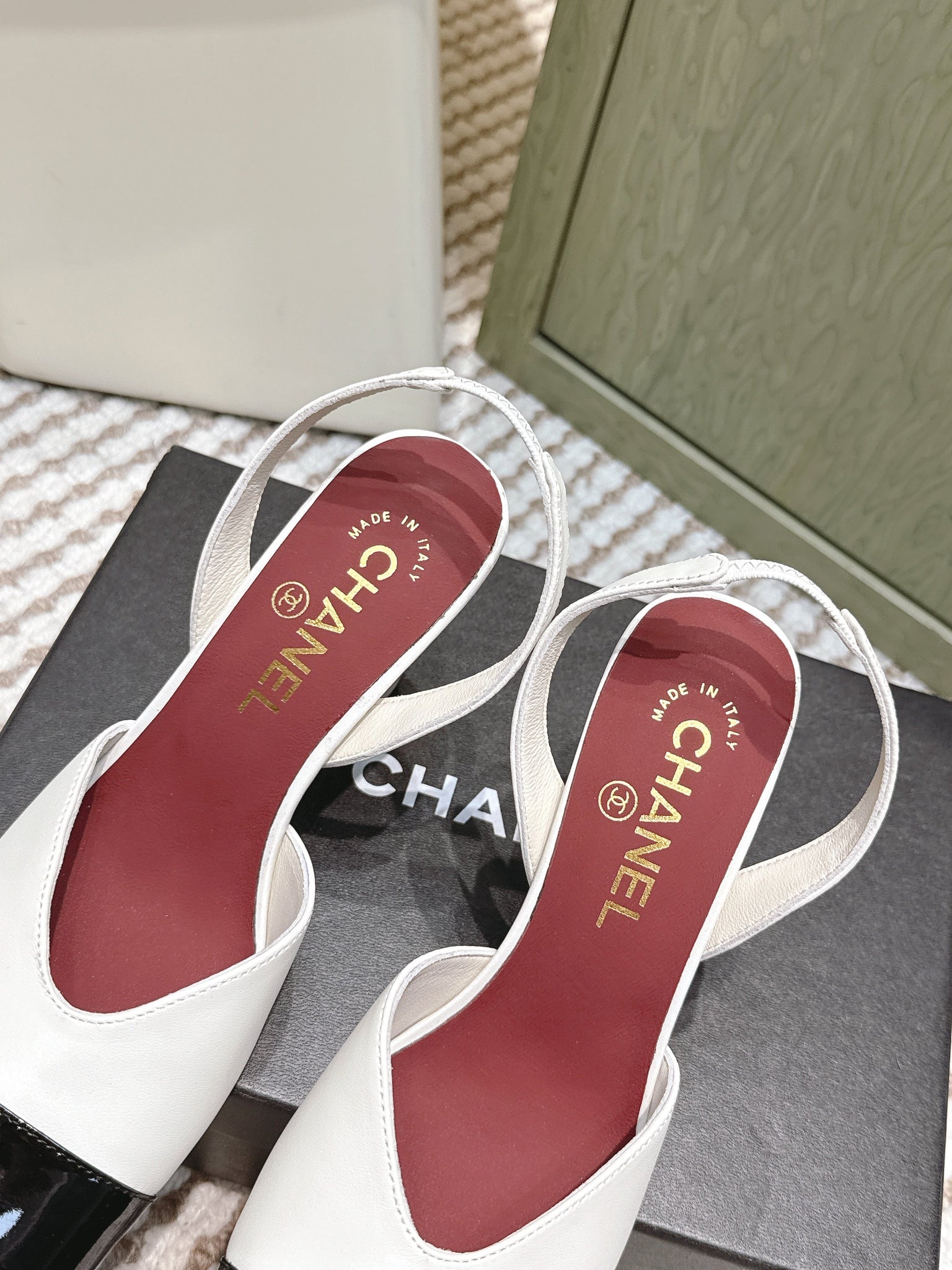 CHANEL 25S HIGH-HEELED SQUARE-TOE SLINGBACK 90MM IN WHITE AND BLACK CALFSKIN