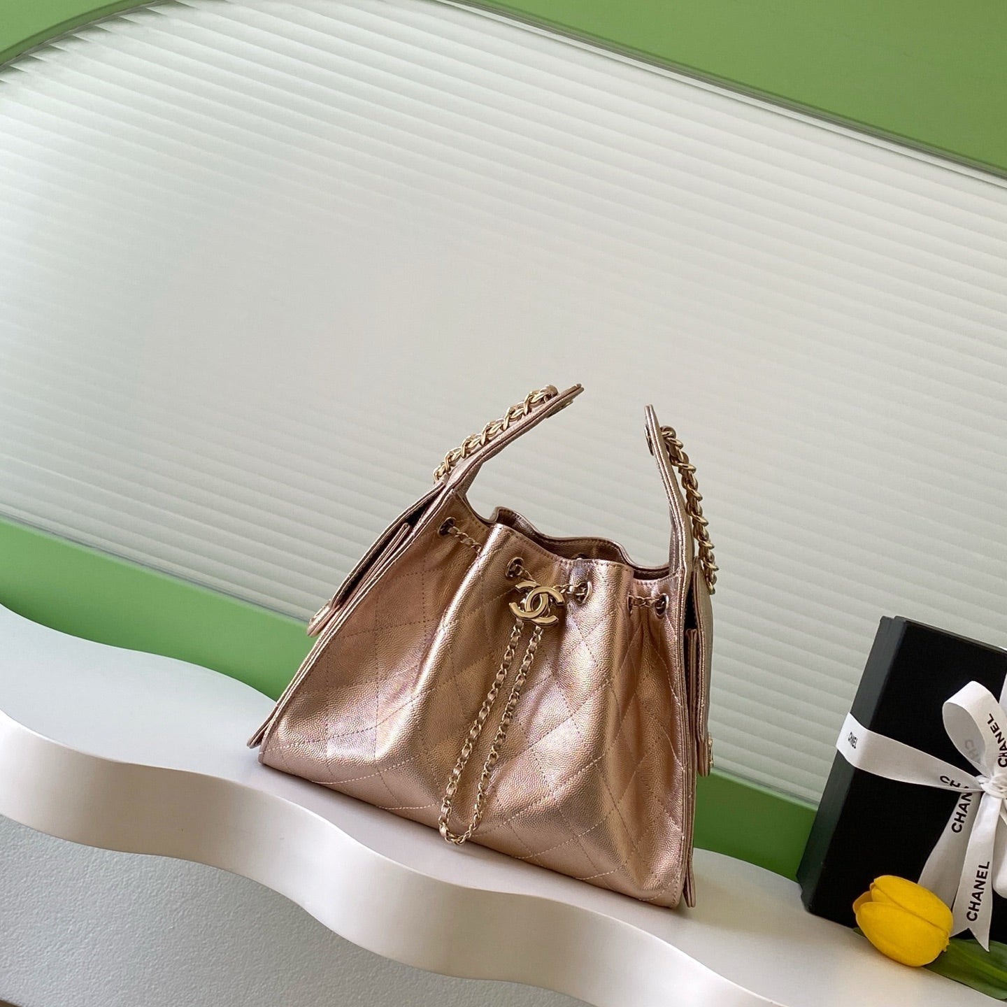 CHANEL 25S HOBO BAG 30 IN ROSE METALLIC CAVIAR