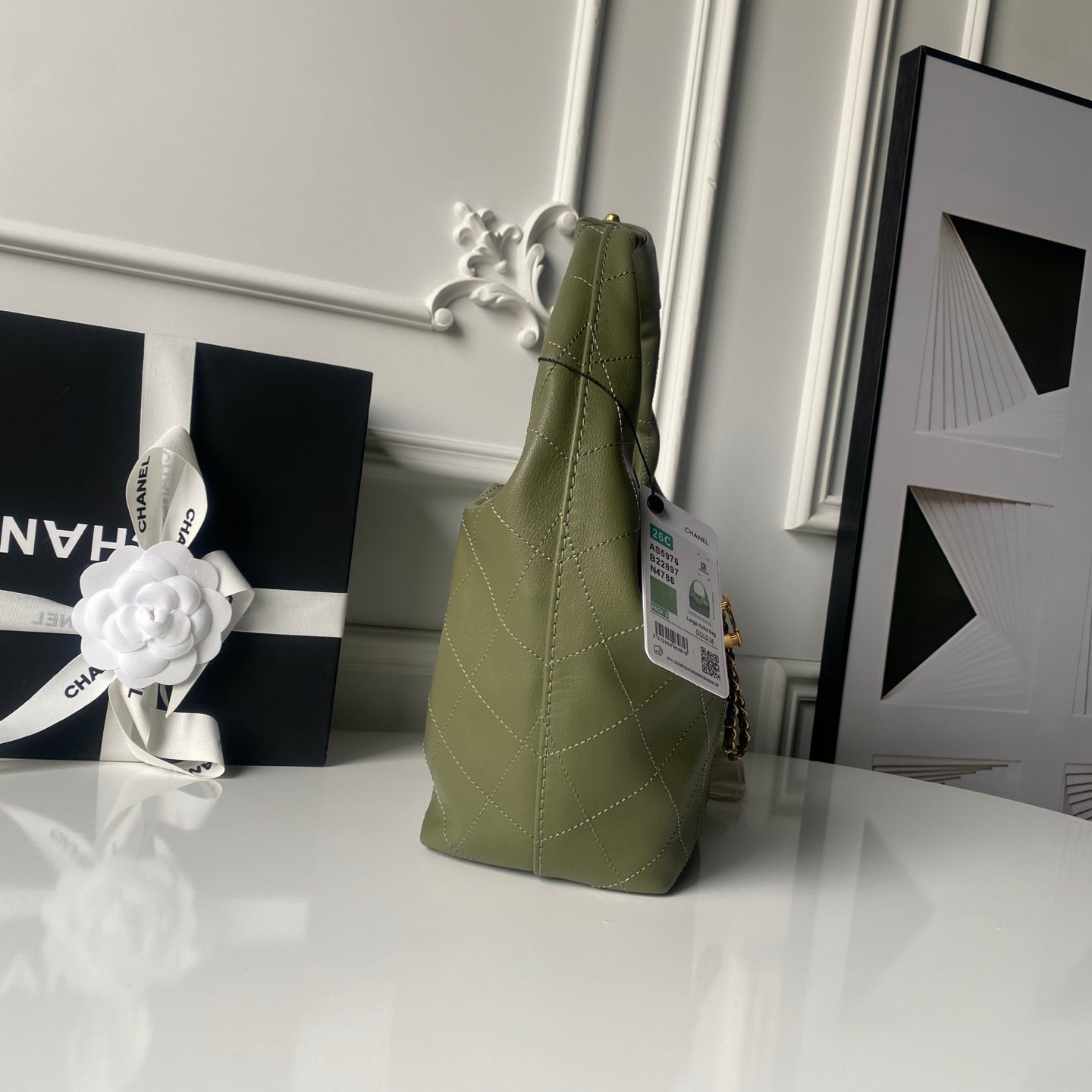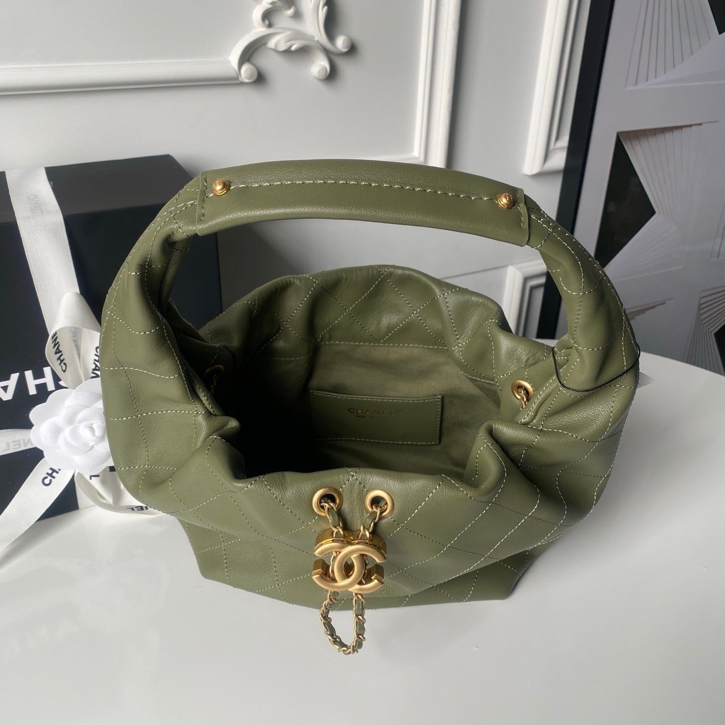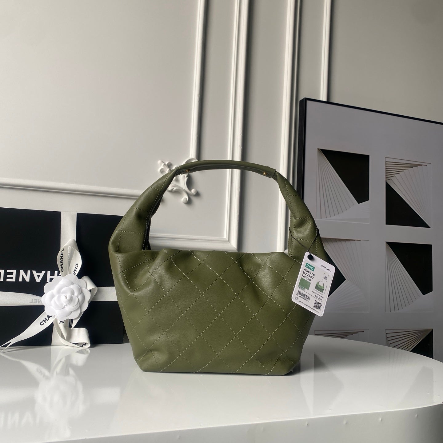 CHANEL 25S HOBO BAG 32 IN DARK GREEN LAMBSKIN