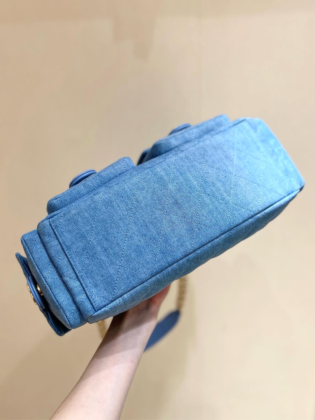 CHANEL 25S LARGE HOBO BAG 35 IN LIGHT BLUE DENIM GOLD HARDWARE