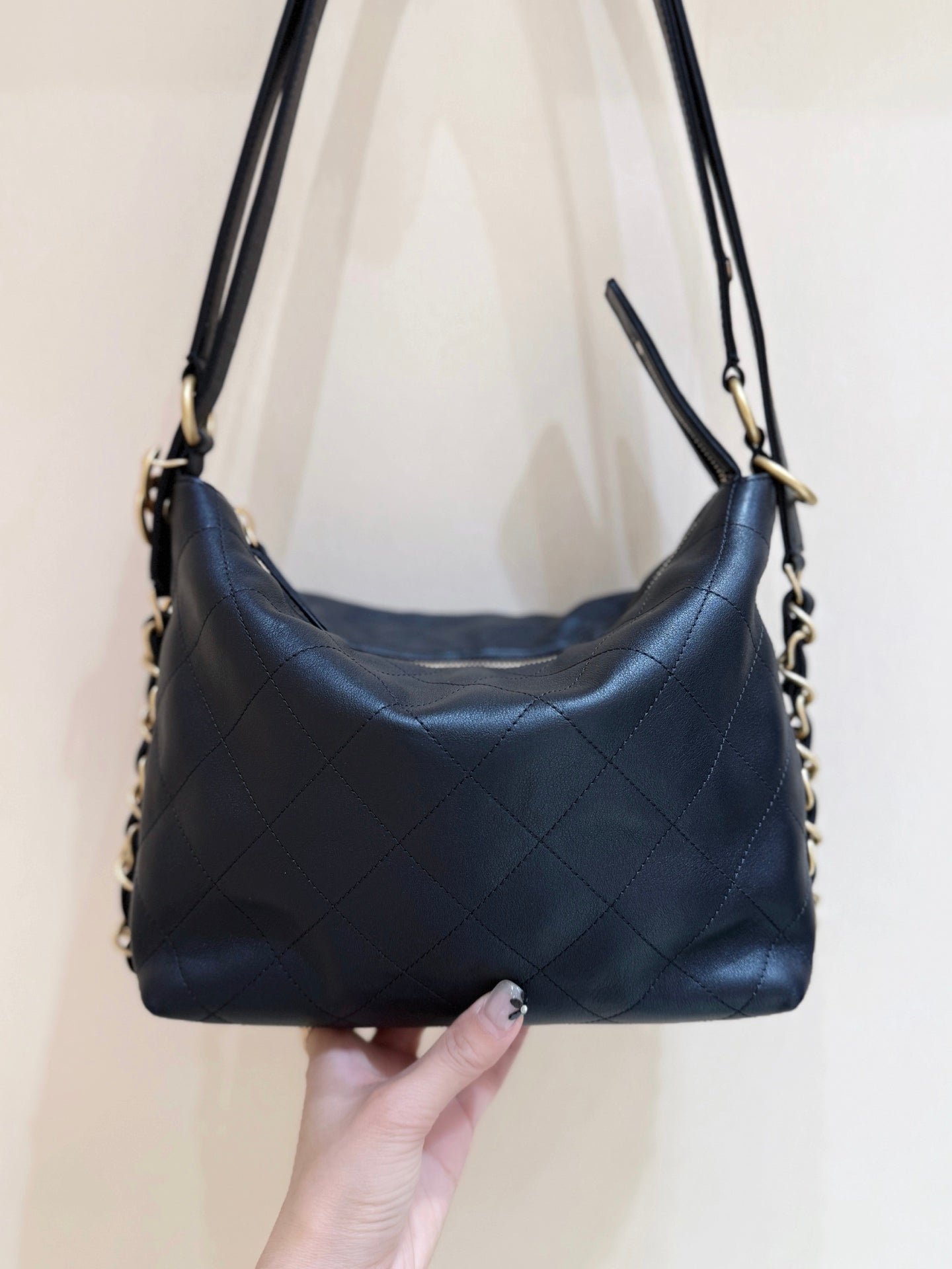 CHANEL 25S MINI MAXIUM OLD HOBO BAG 31 IN BLACK CALFSKIN