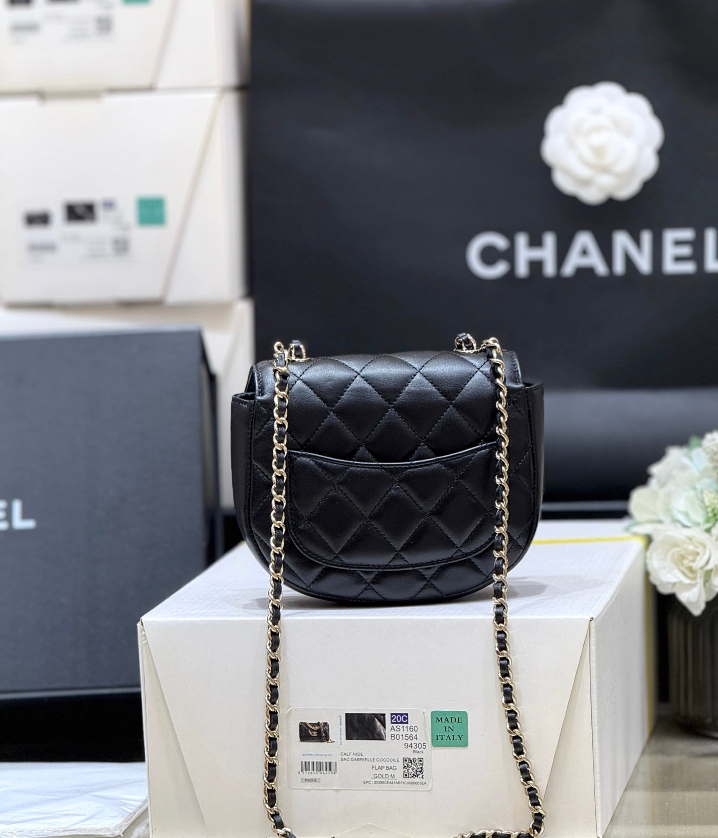 QUILTED TOP HANDLE BAG 16 IN BLACK LAMBSKIN GOLD HARDWARE