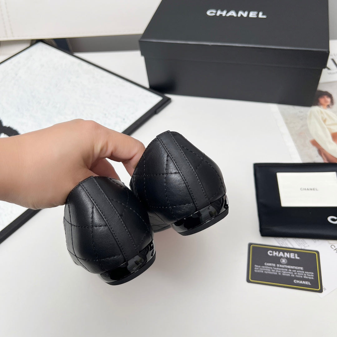 CHANEL 25S DANCE SHOES WITH PRINTED LOGO IN BLACK FULL CALFSKIN