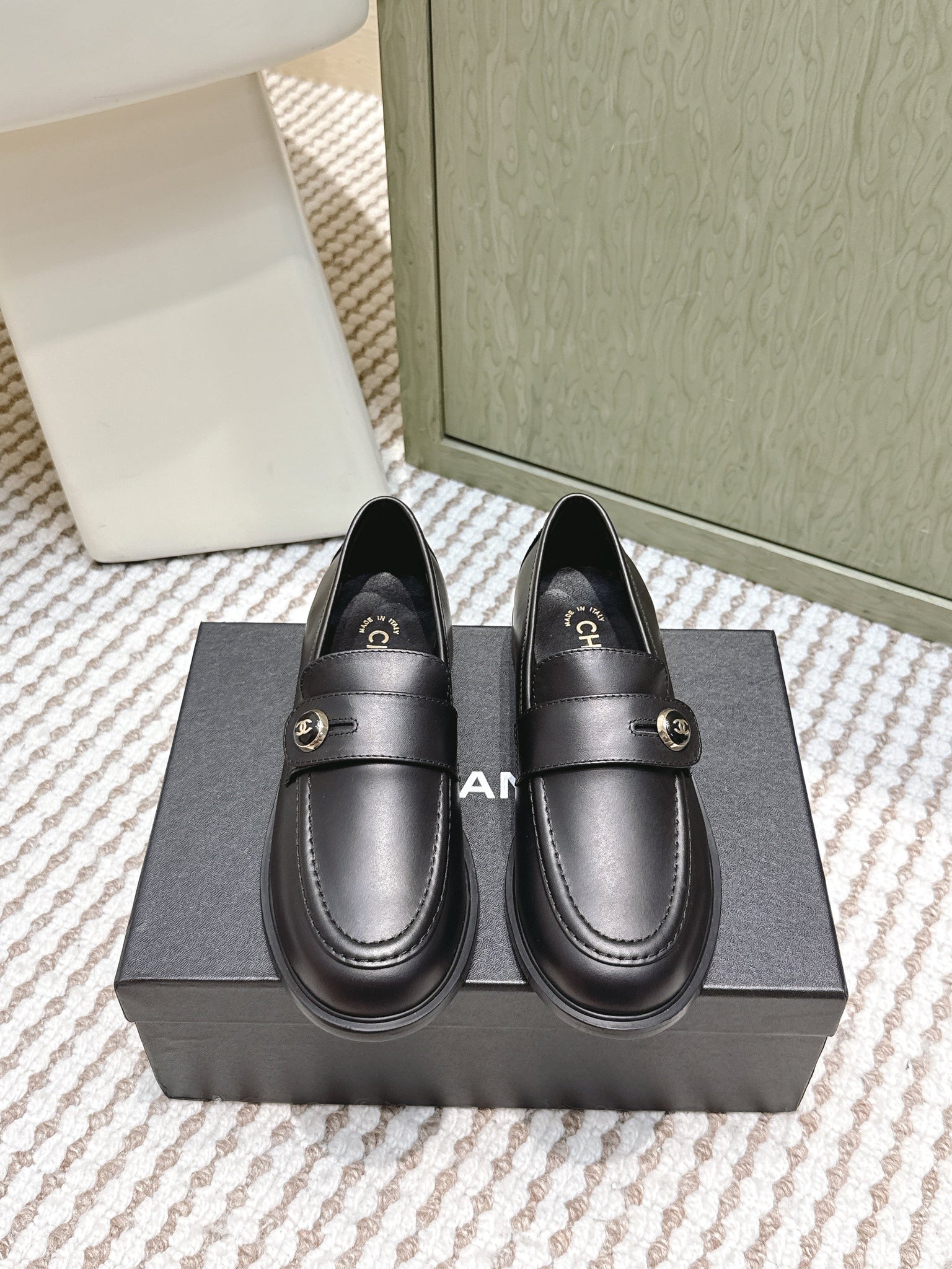 CHANEL 25S GODDESS FLAT LOAFERS IN BLACK CALFSKIN GOLD HARDWARE