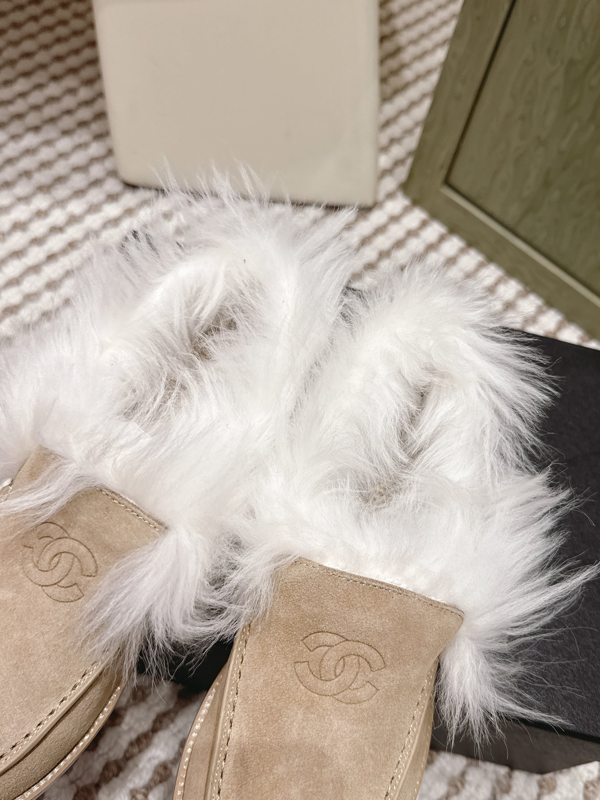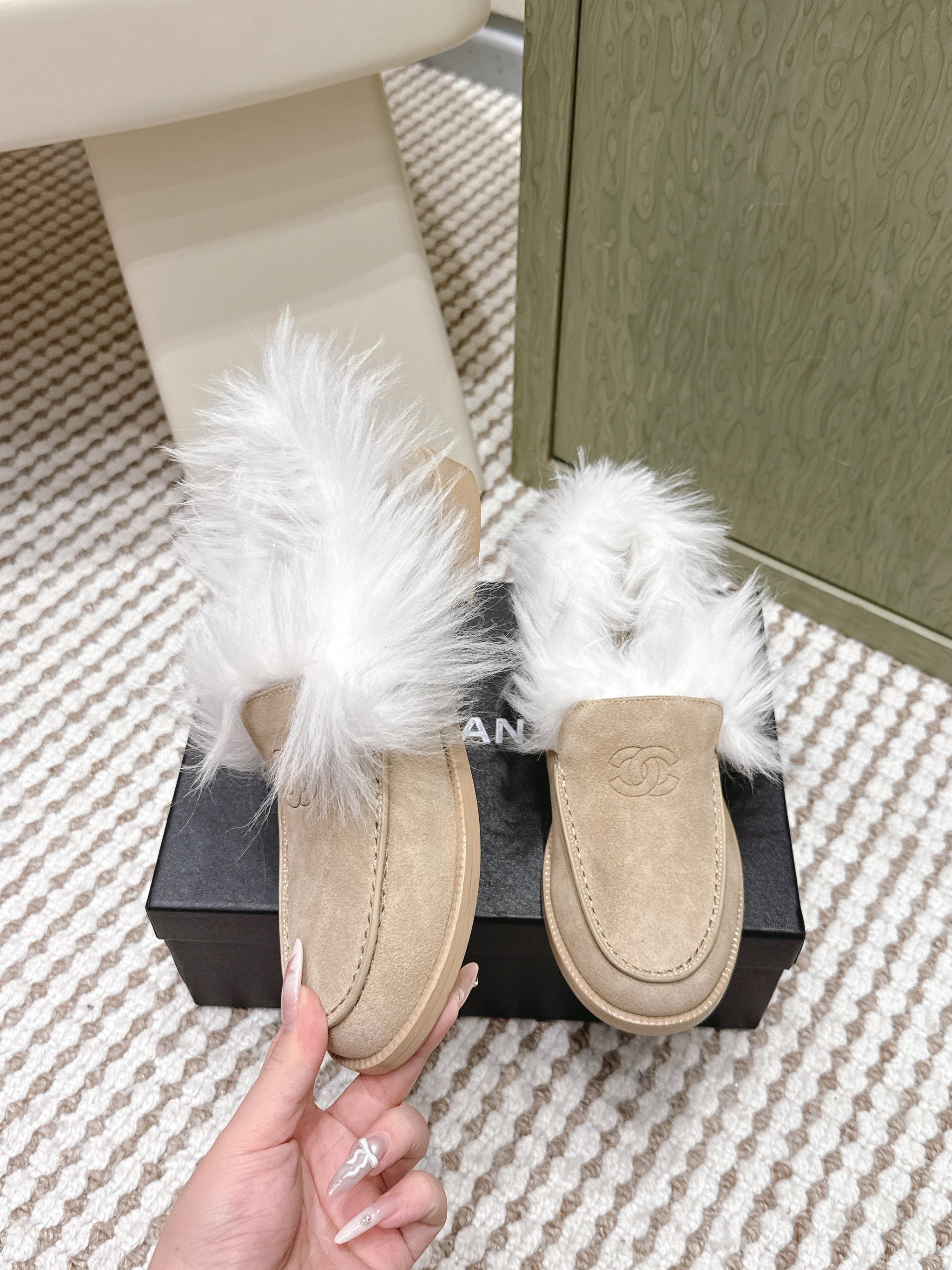CHANEL 25S LOAFERS MOCCASIN IN BEIGE SUEDE WITH WHITE MINK FUR LINING