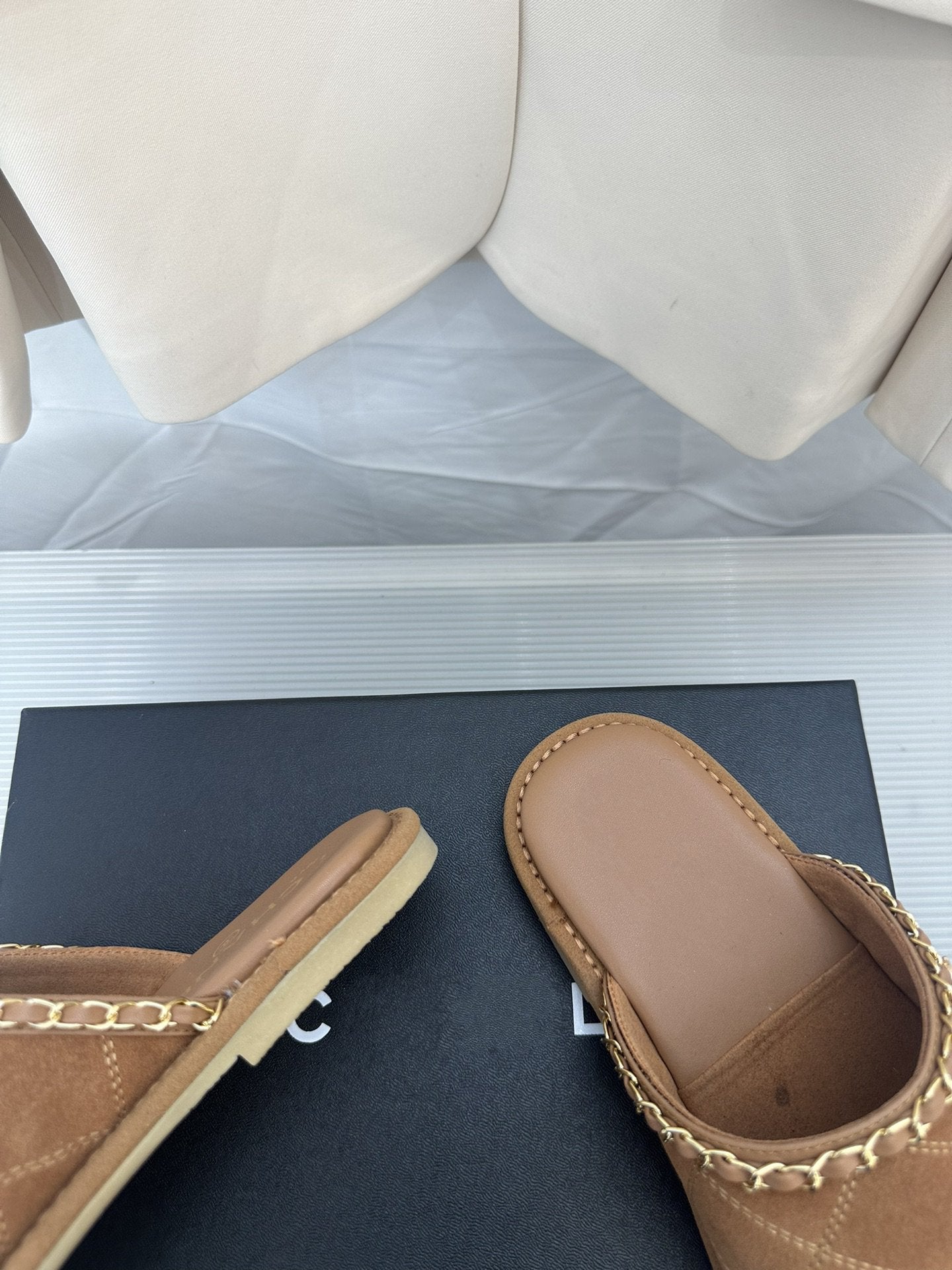 CC Brown Suede Gold Chain Mules