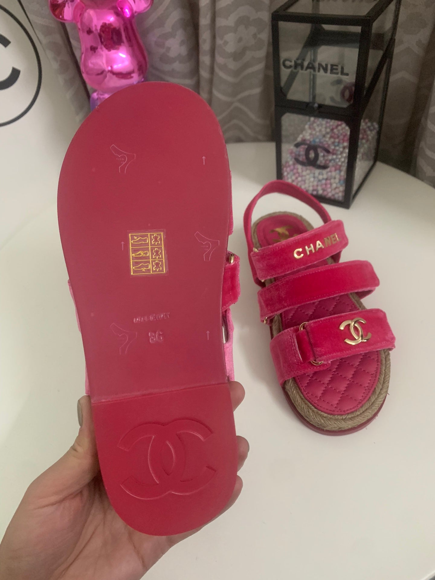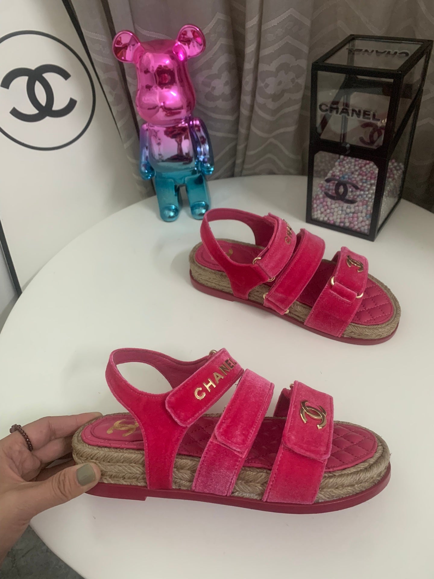 CC DAD SANDALS IN HOT PINK VELVET AND CALFSKIN