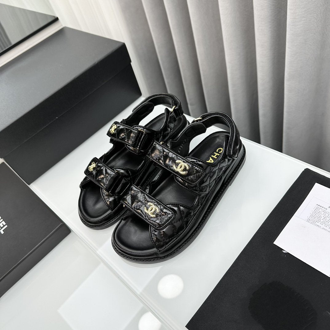 dad sandals black patent lambskin