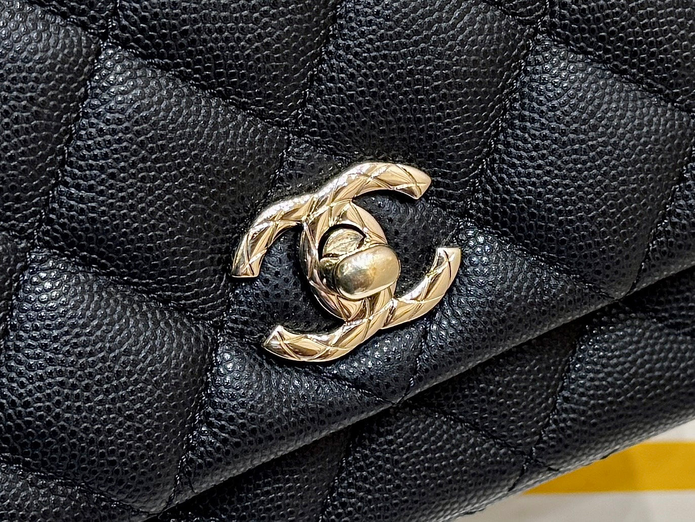 CHANEL 25S COCO CRUSH HANDLE 18 IN BLACK CALFSKIN GOLD HARDWARE