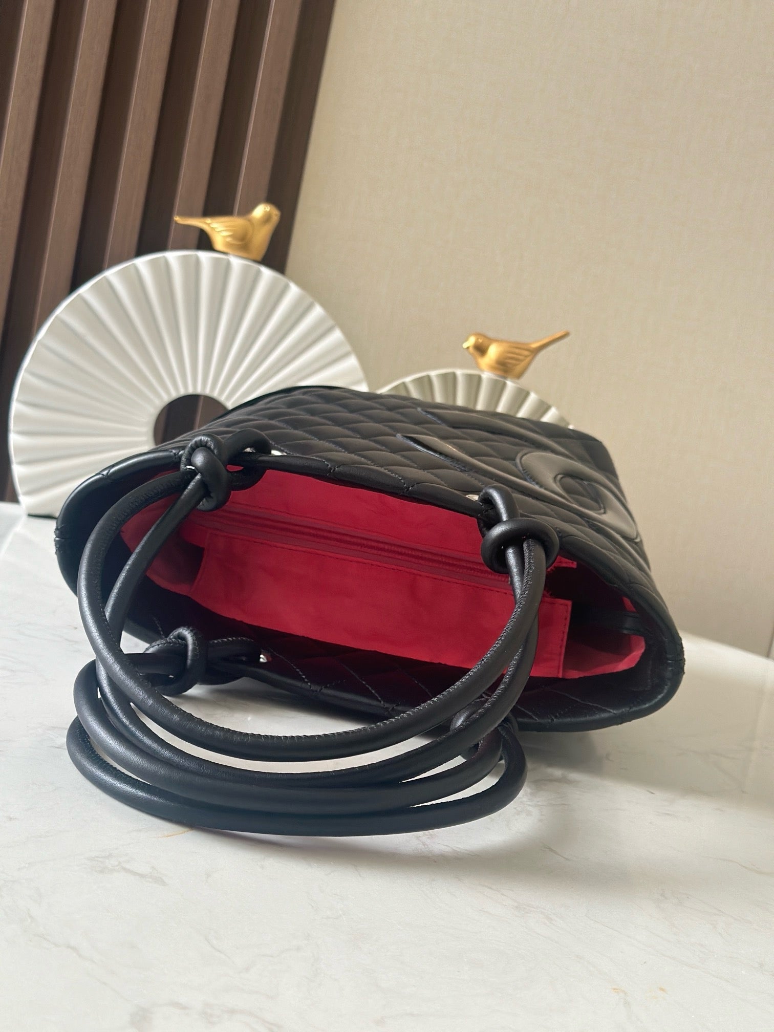 CHANEL 25S CAMBON LIGNE TOTE BAG 24 IN BLACK CALFSKIN