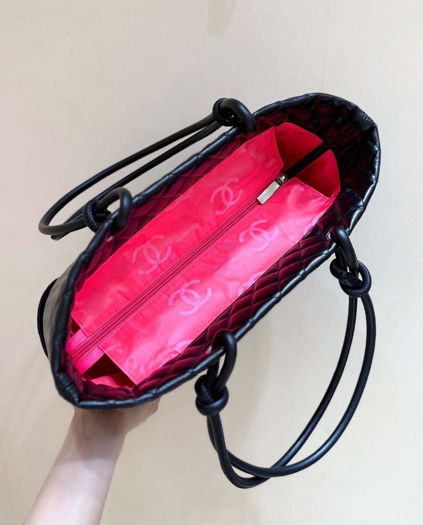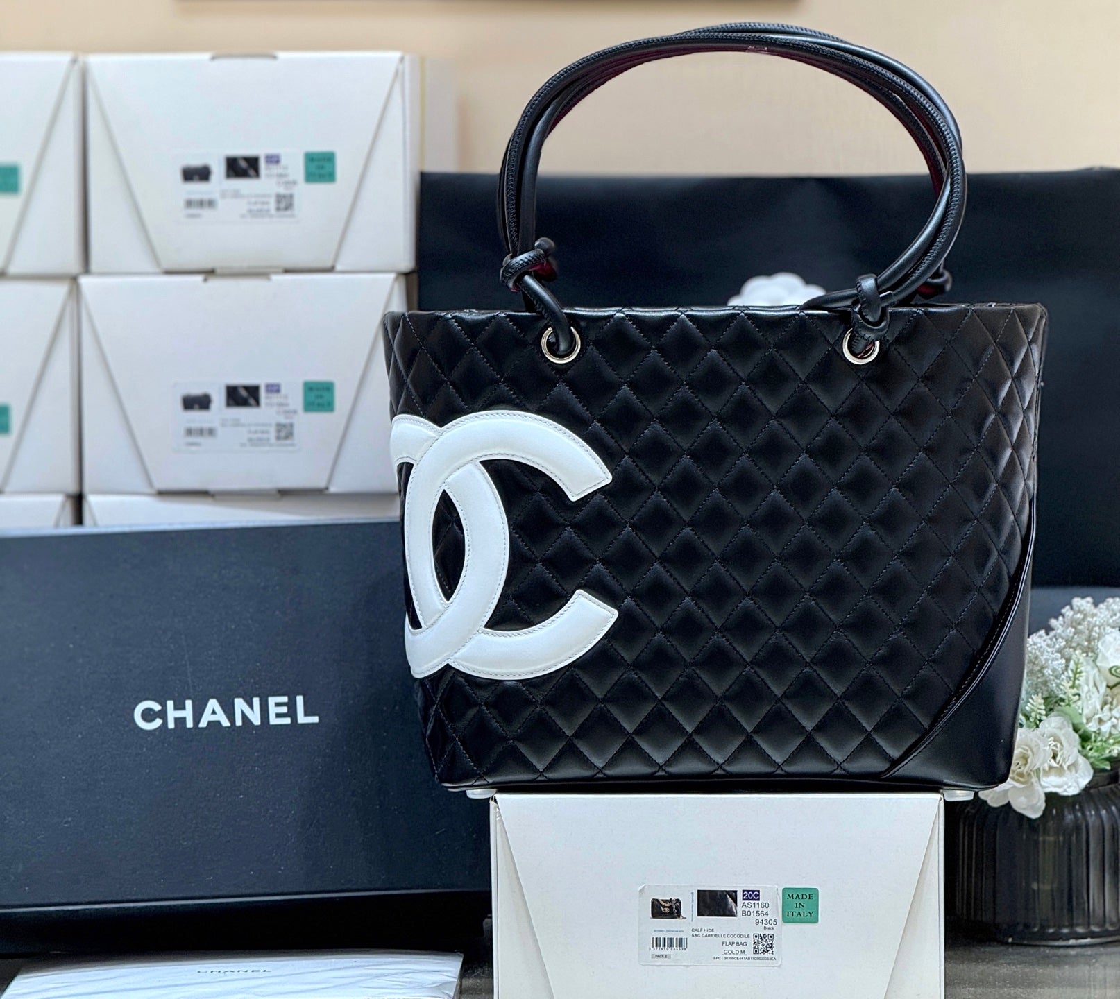 CHANEL 25S CAMBON LIGNE TOTE BAG 30 IN BLACK AND WHITE LAMBSKIN