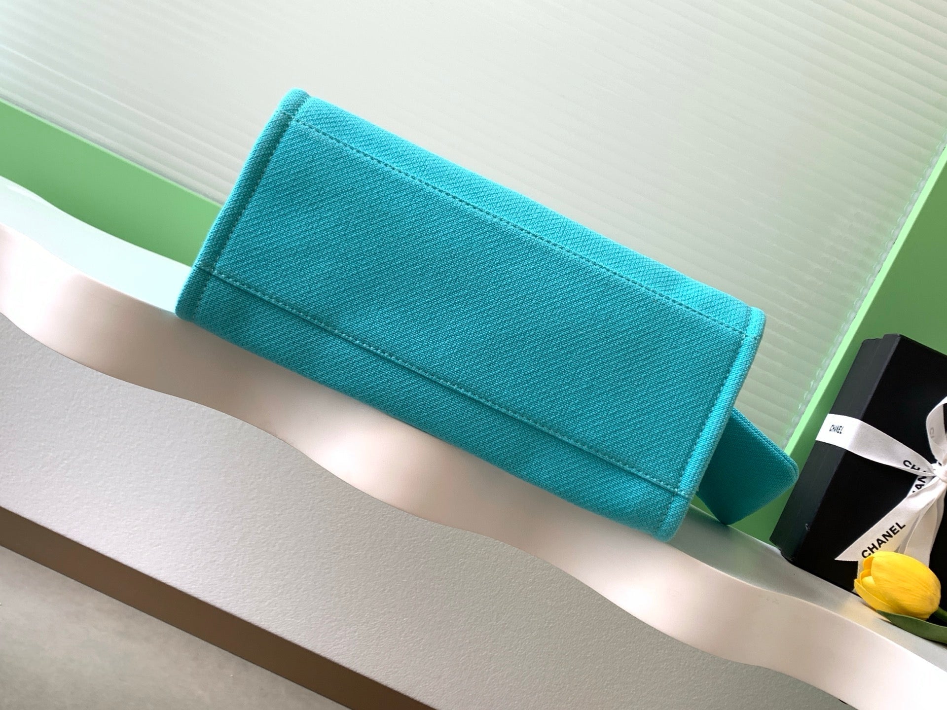 CHANEL 25S TOTE BAG 33 IN TURQUOISE BLUE CANVAS