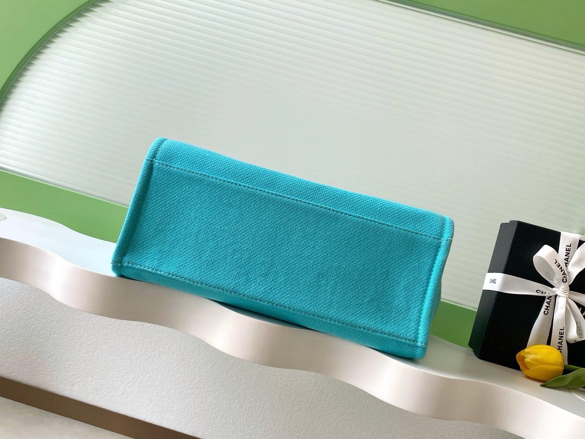 CHANEL 25S TOTE BAG 38 IN TURQUOISE BLUE CANVAS