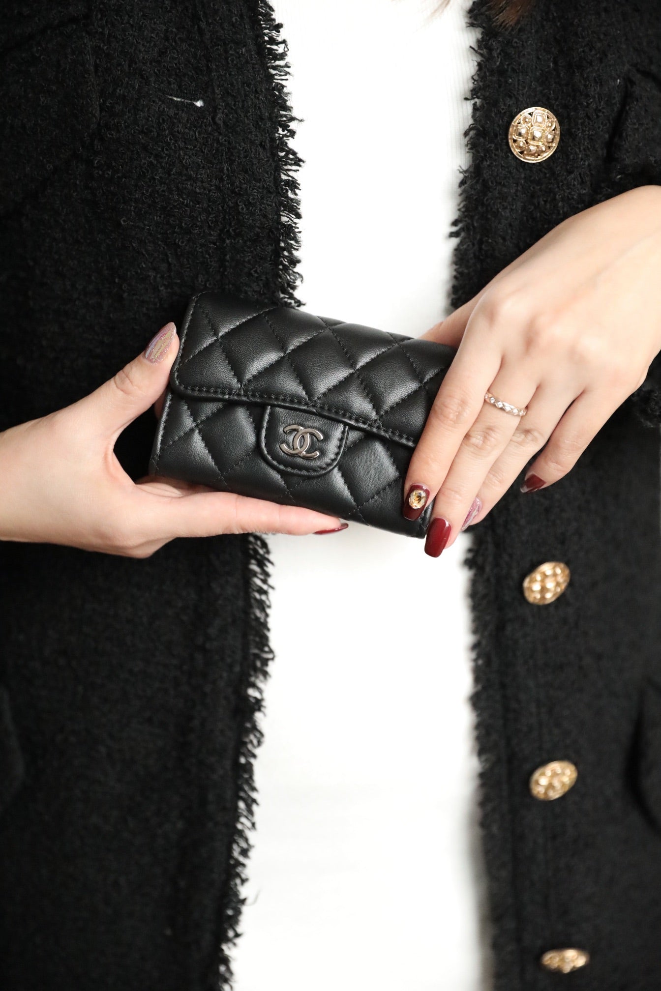 CC FLAP CARD HOLDER 11.3 BLACK CALFSKIN SILVER ICON
