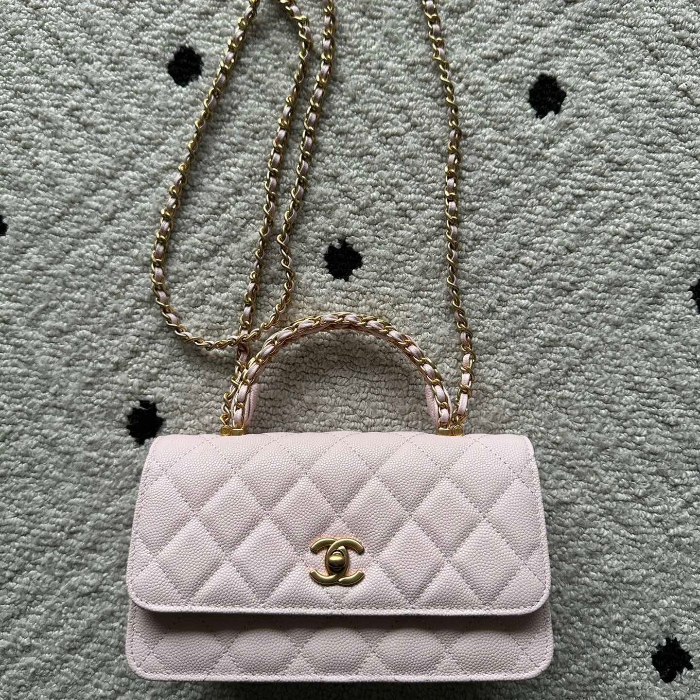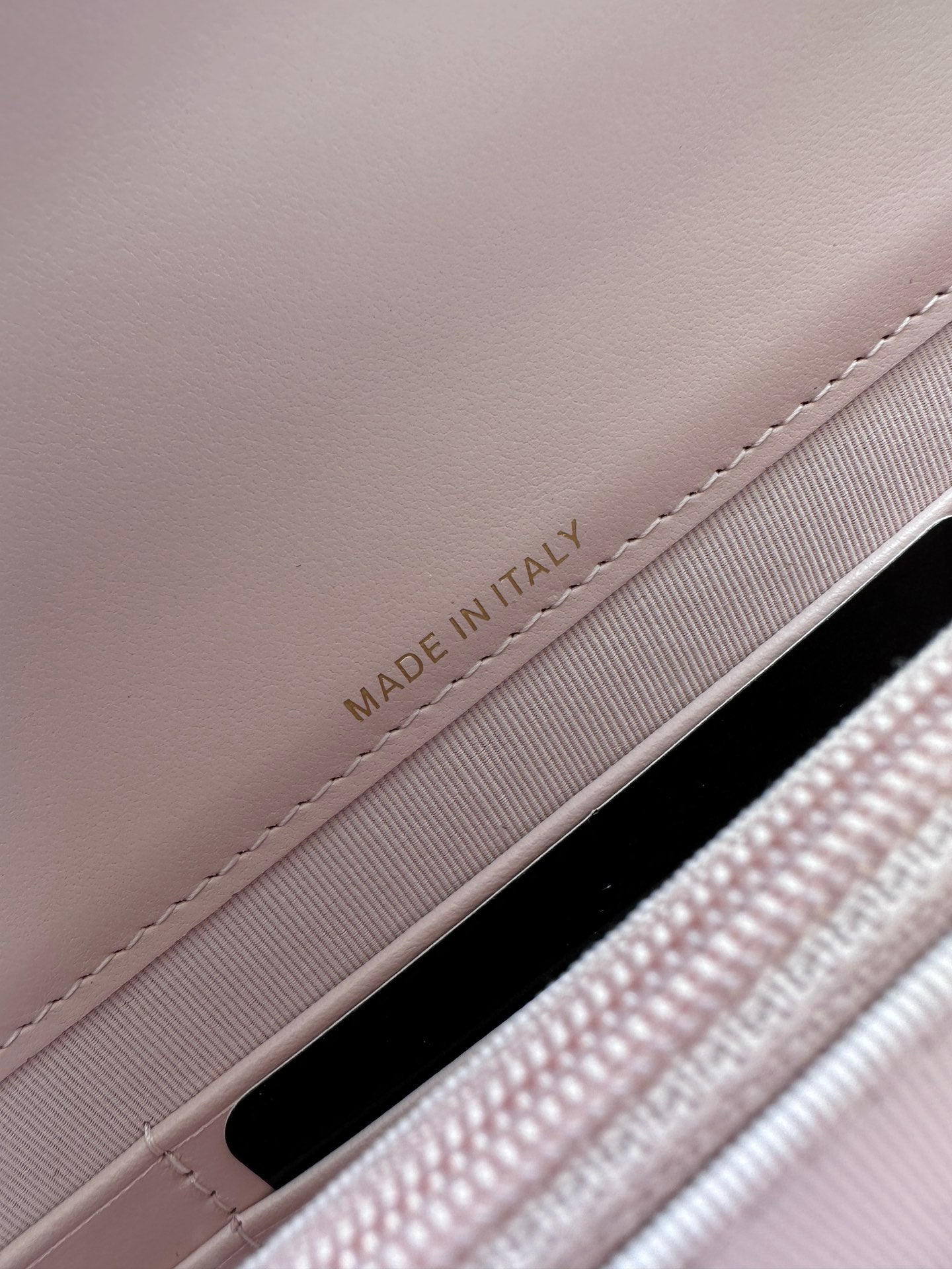 CHANEL 25S CLASSIC WALLET ON CHAIN 19 IN LIGHT PINK LAMBSKIN WITH GOLD HARDWARE
