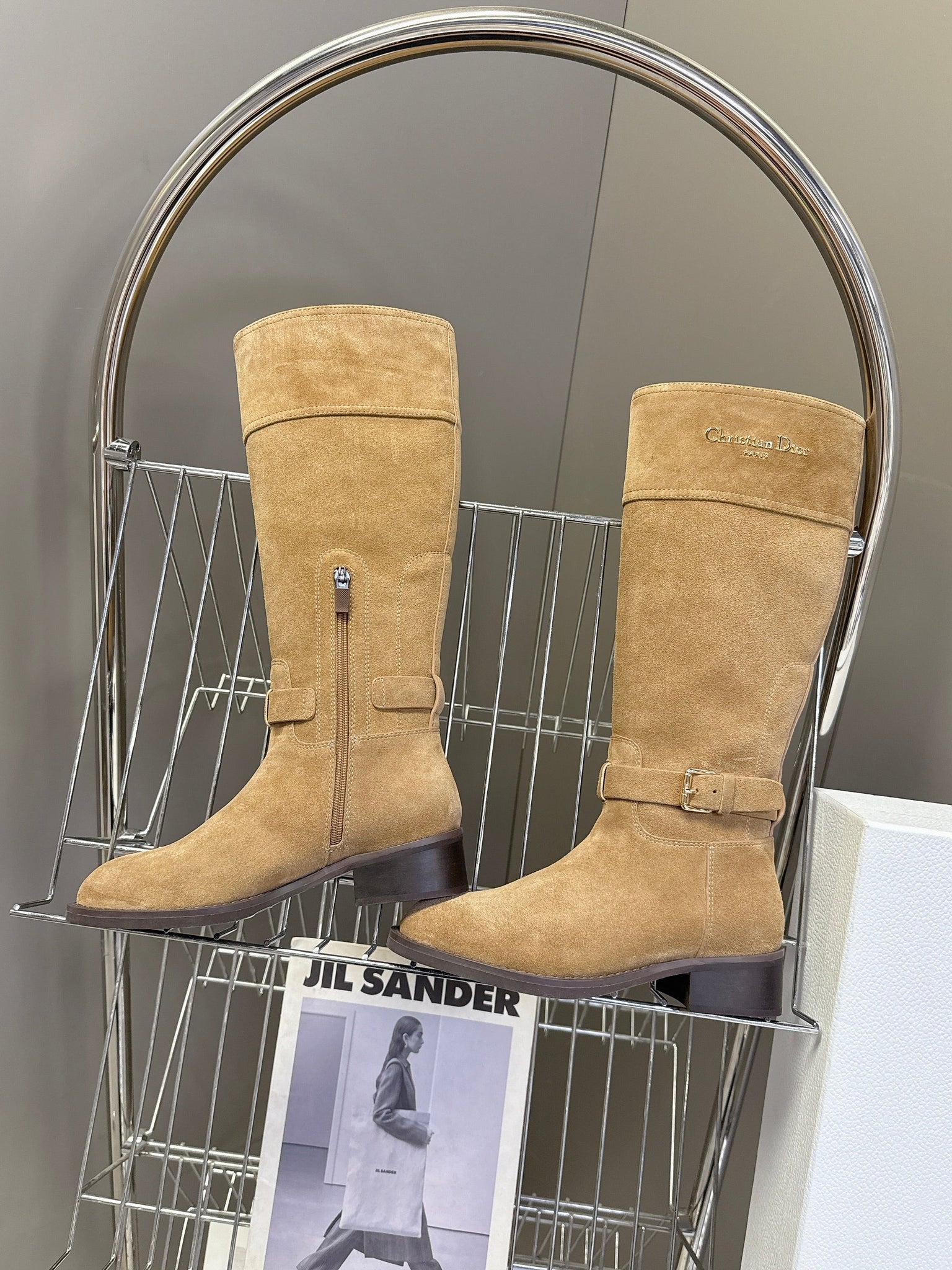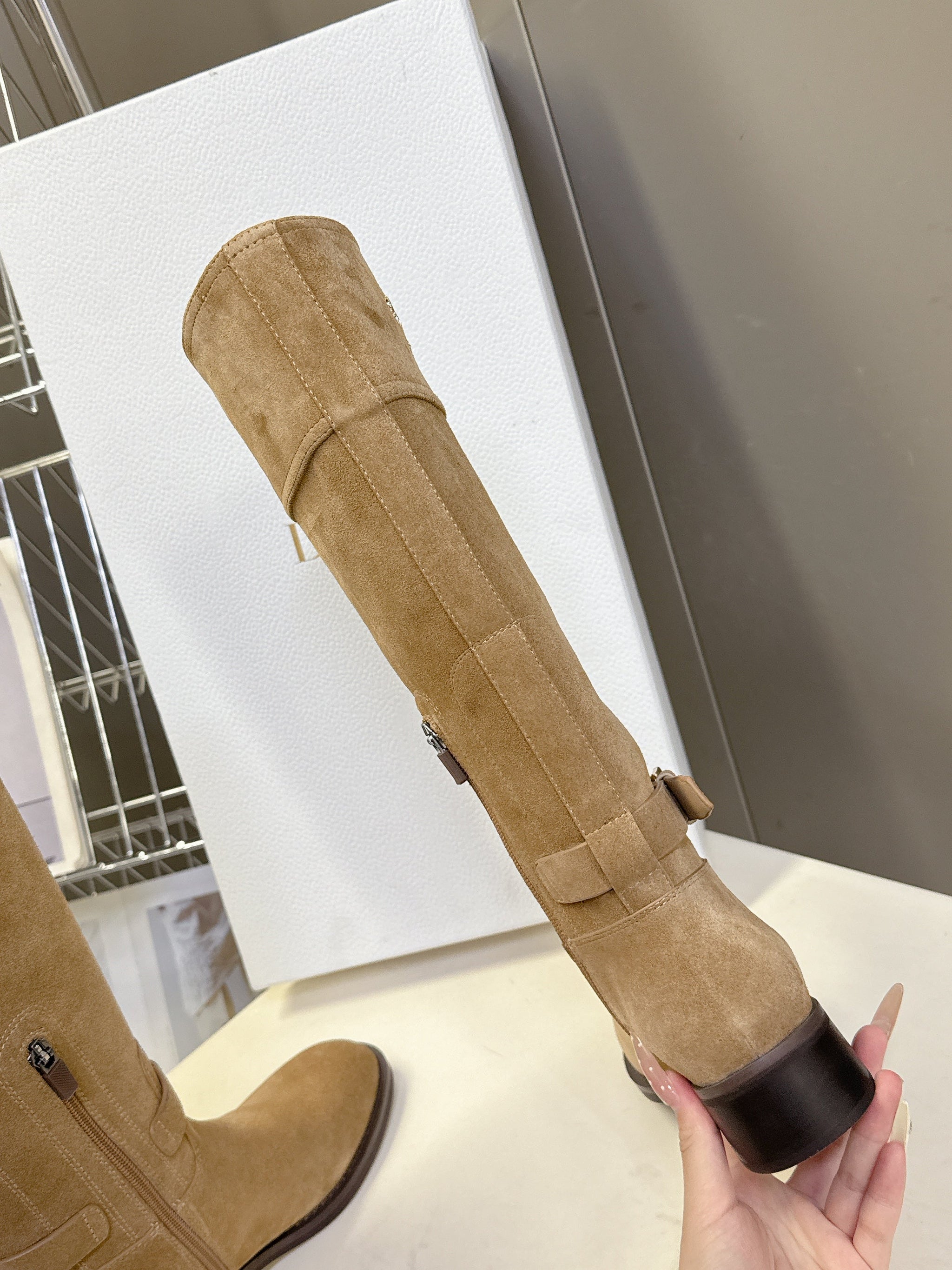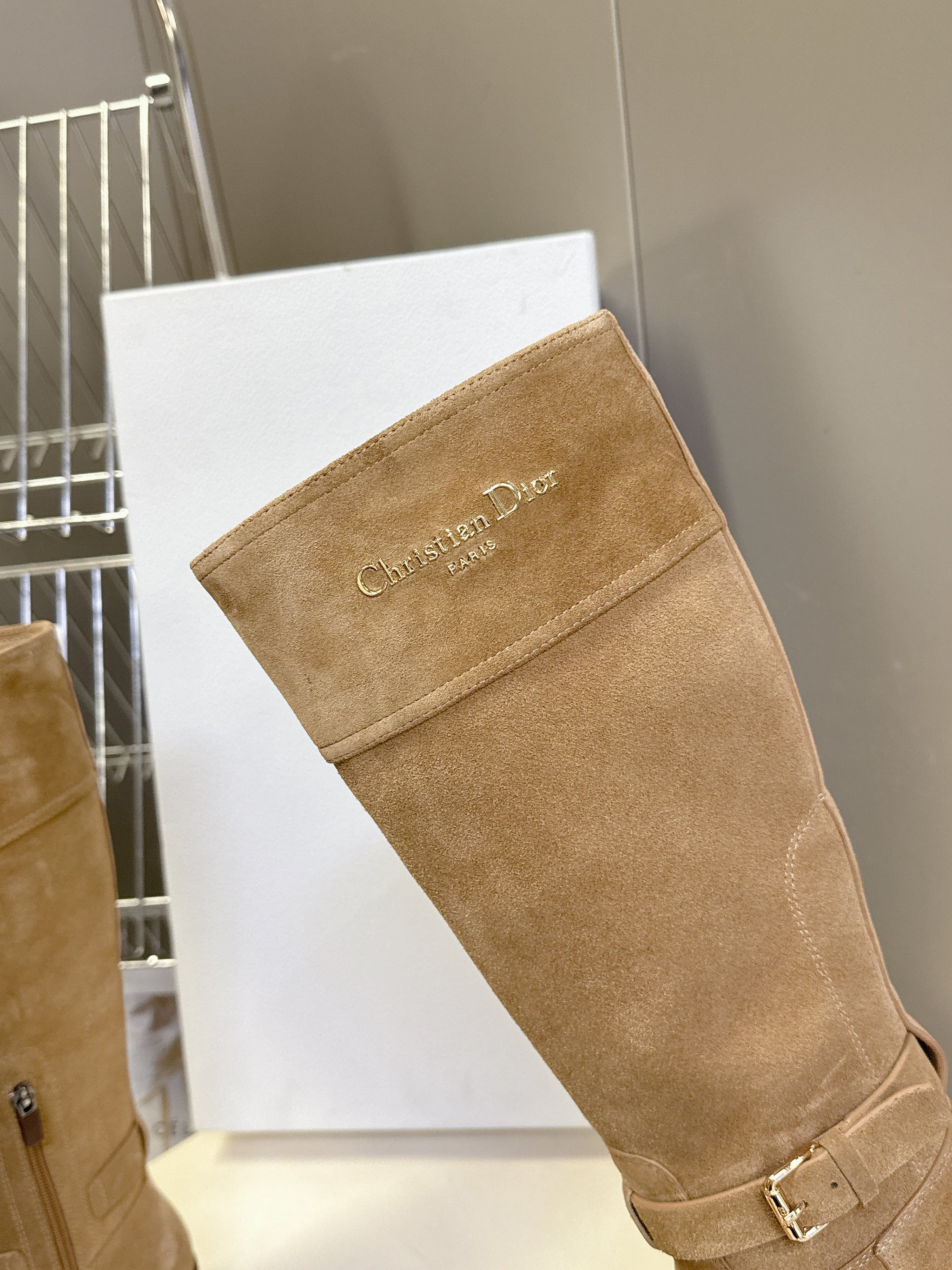 DIOR 25S BROWN HIGH BOOTS IN BEIGE SUEDE