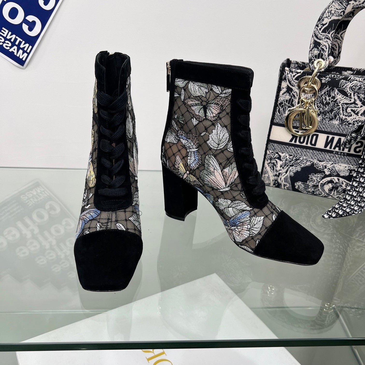 DIOR 25S NAUGHTILY-D ANKLE BOOTS 80 MM IN BLACK MESH TULLE AND SUEDE STYLE 2