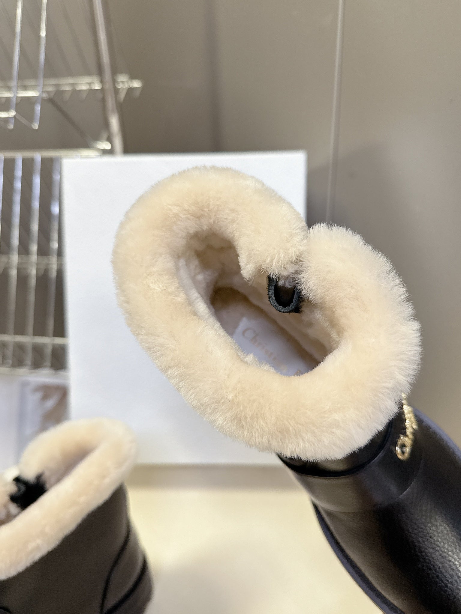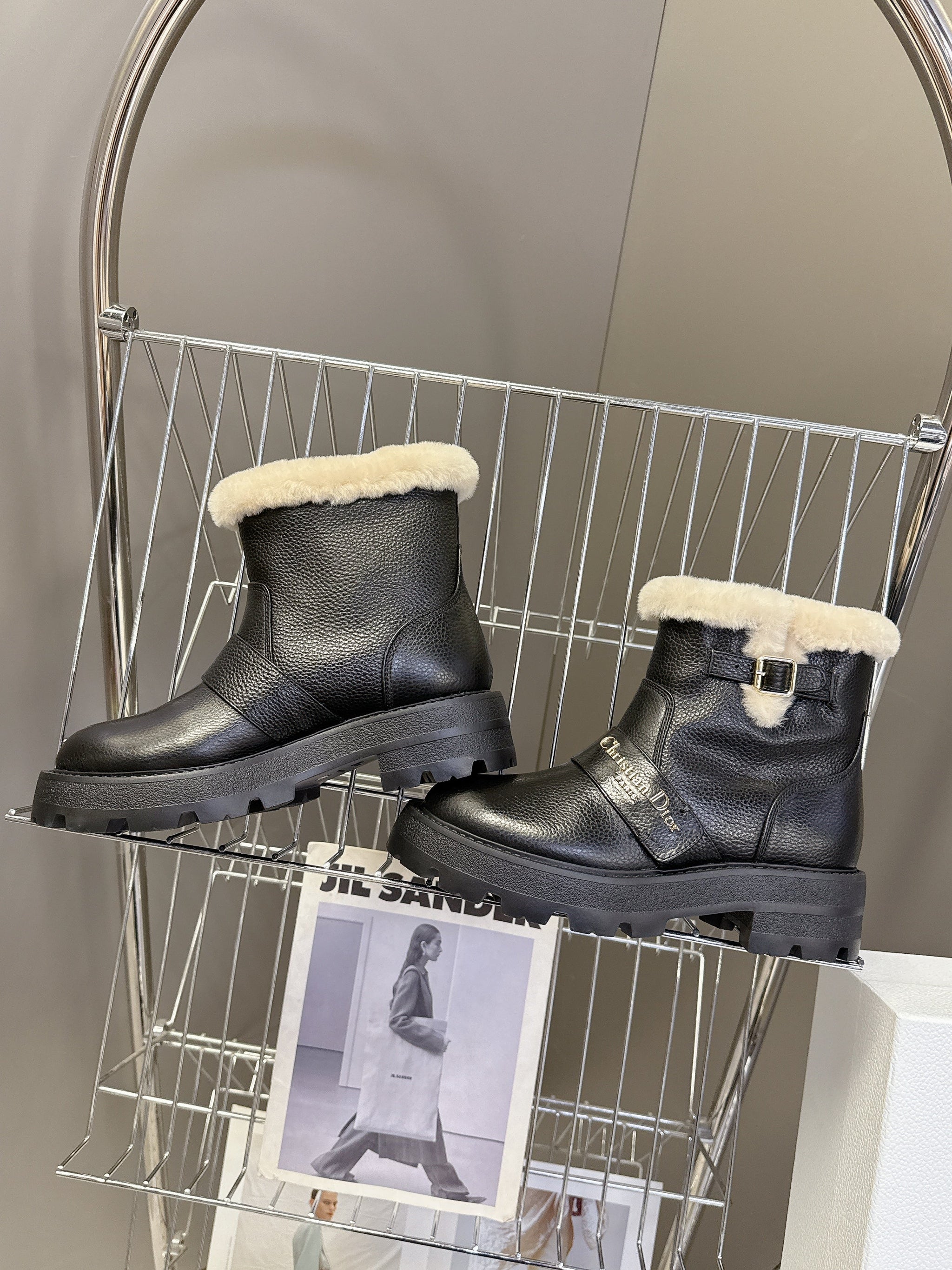DIORALPS ANKLE BOOTS 25S IN BLACK LAMBSKIN AND BEIGE WOOL WITH SILVER HARDWARE