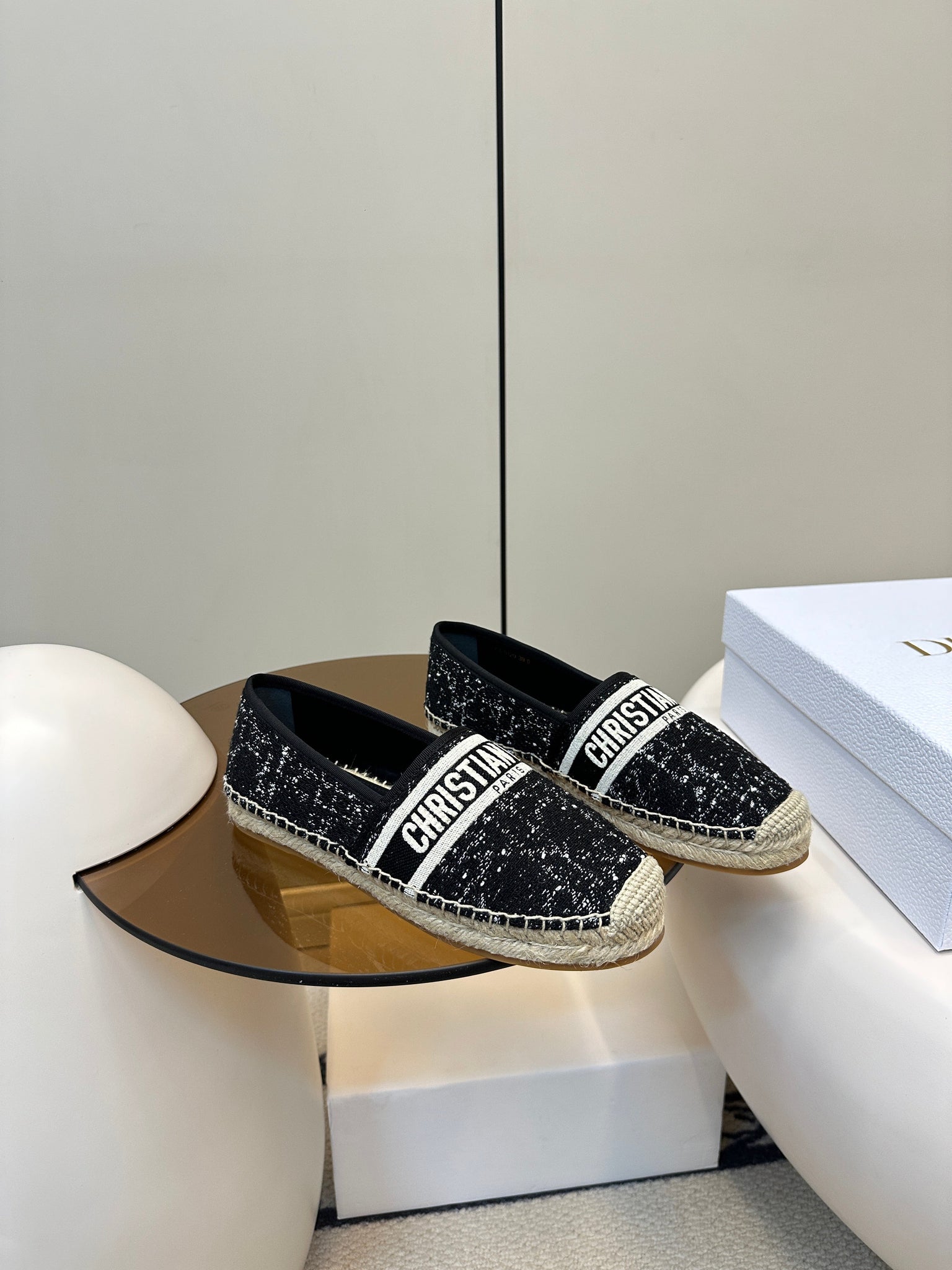 GRANVILLE ESPADRILLE BLACK OBLIQUE EMBROIDERED COTTON