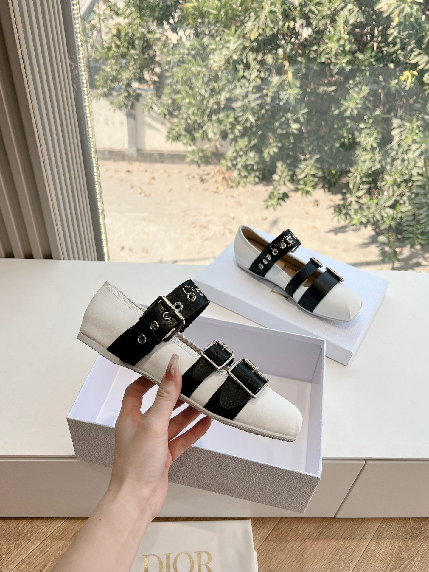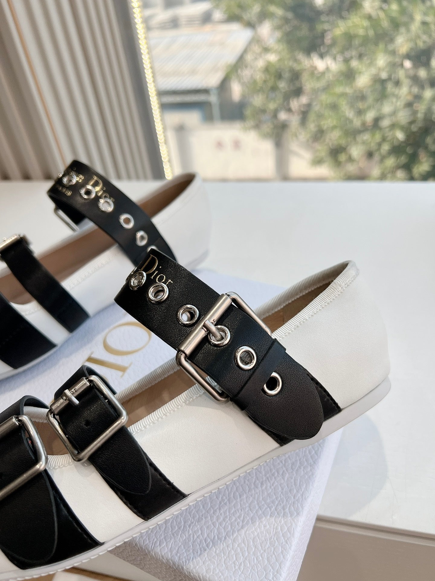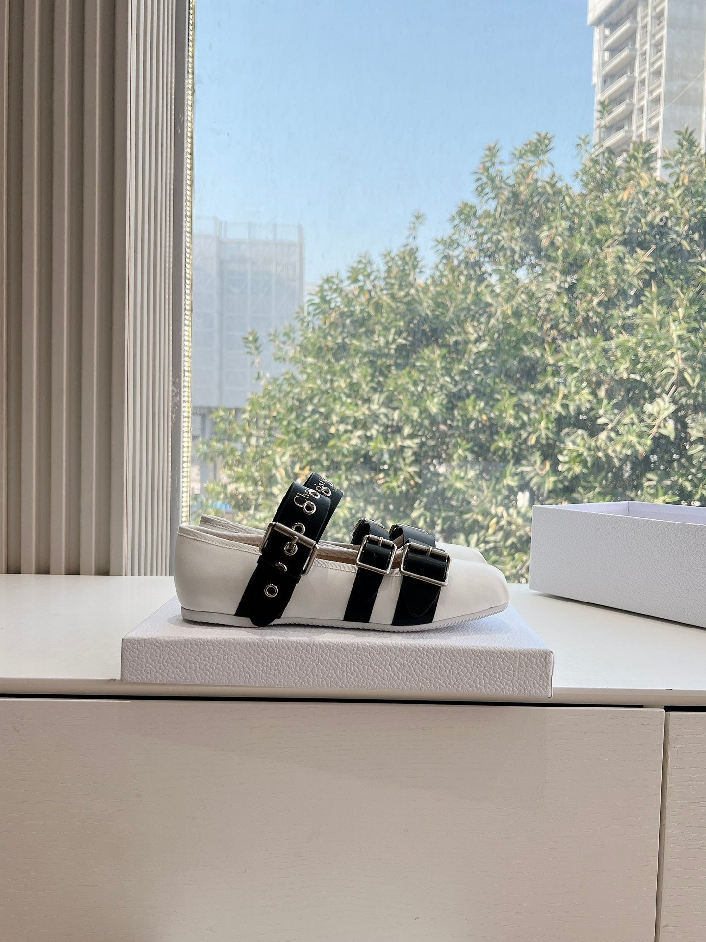PUNK BALLET FLAT IN WHITE MIX BLACK SUPPLE CALFSKIN