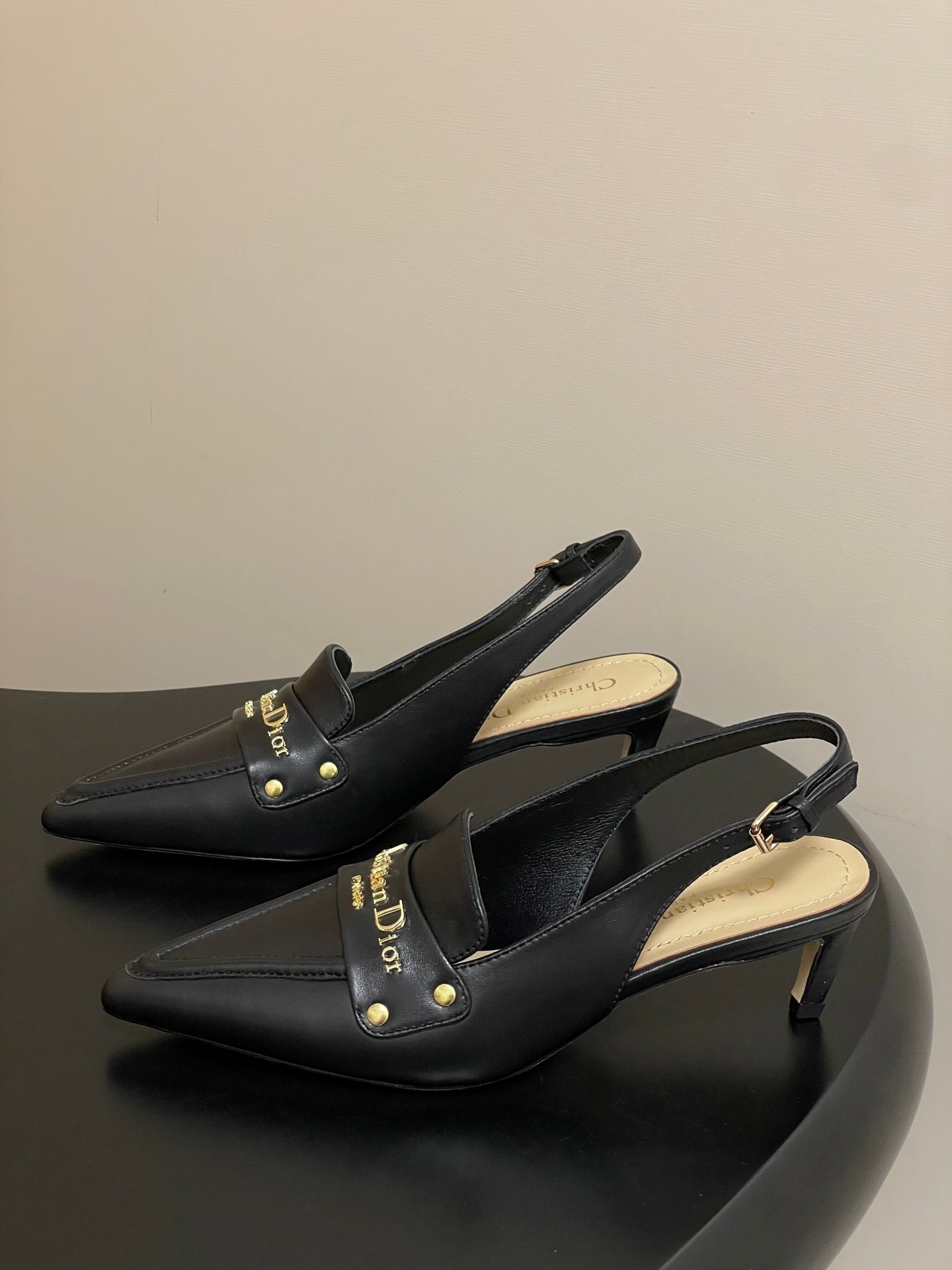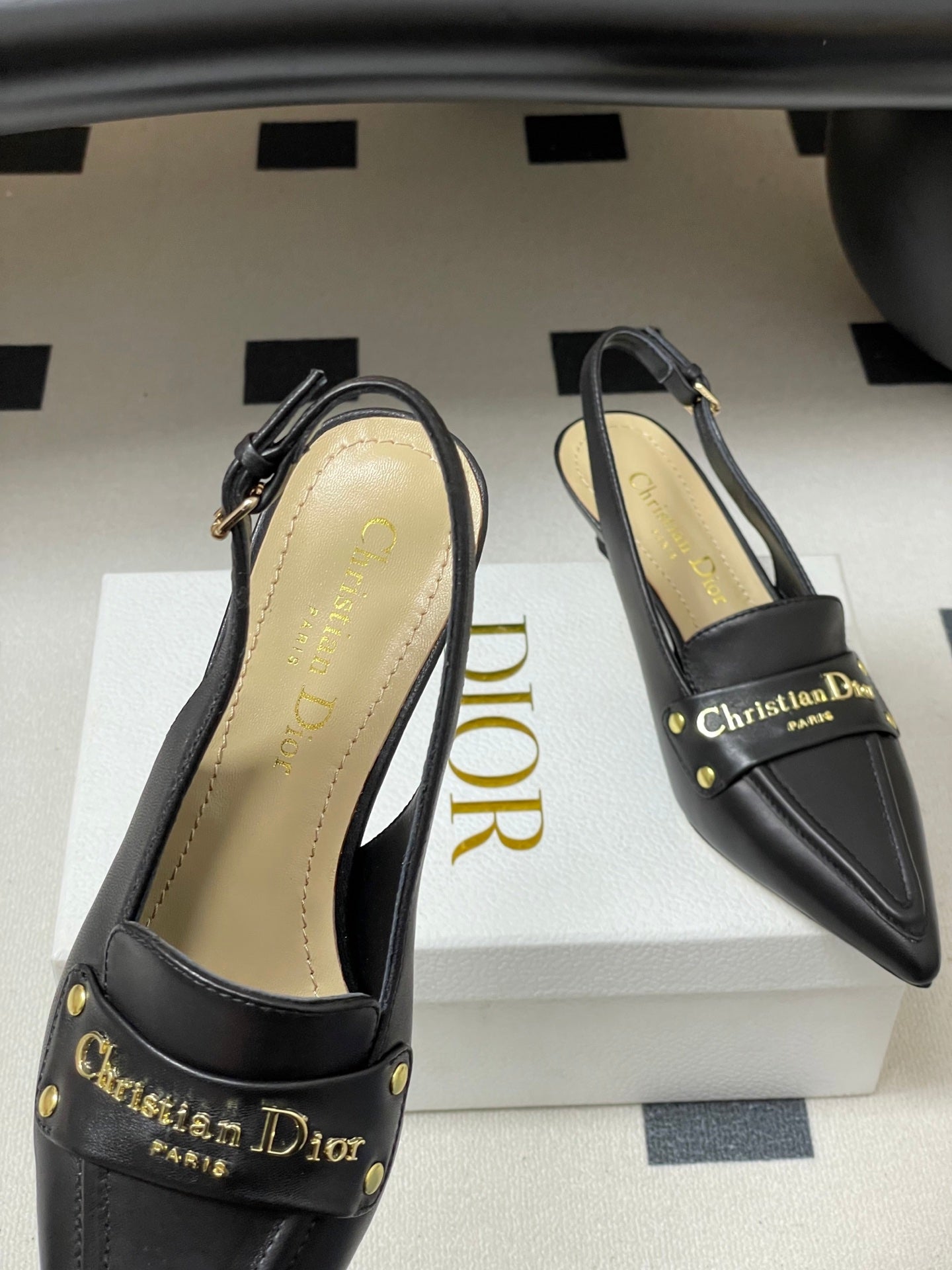 DIOR 25S BOY SLINGBACK HIGH HEELS 50 MM IN BLACK LAMBSKIN