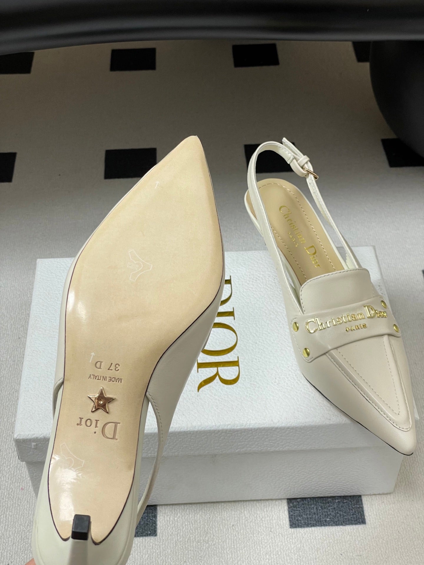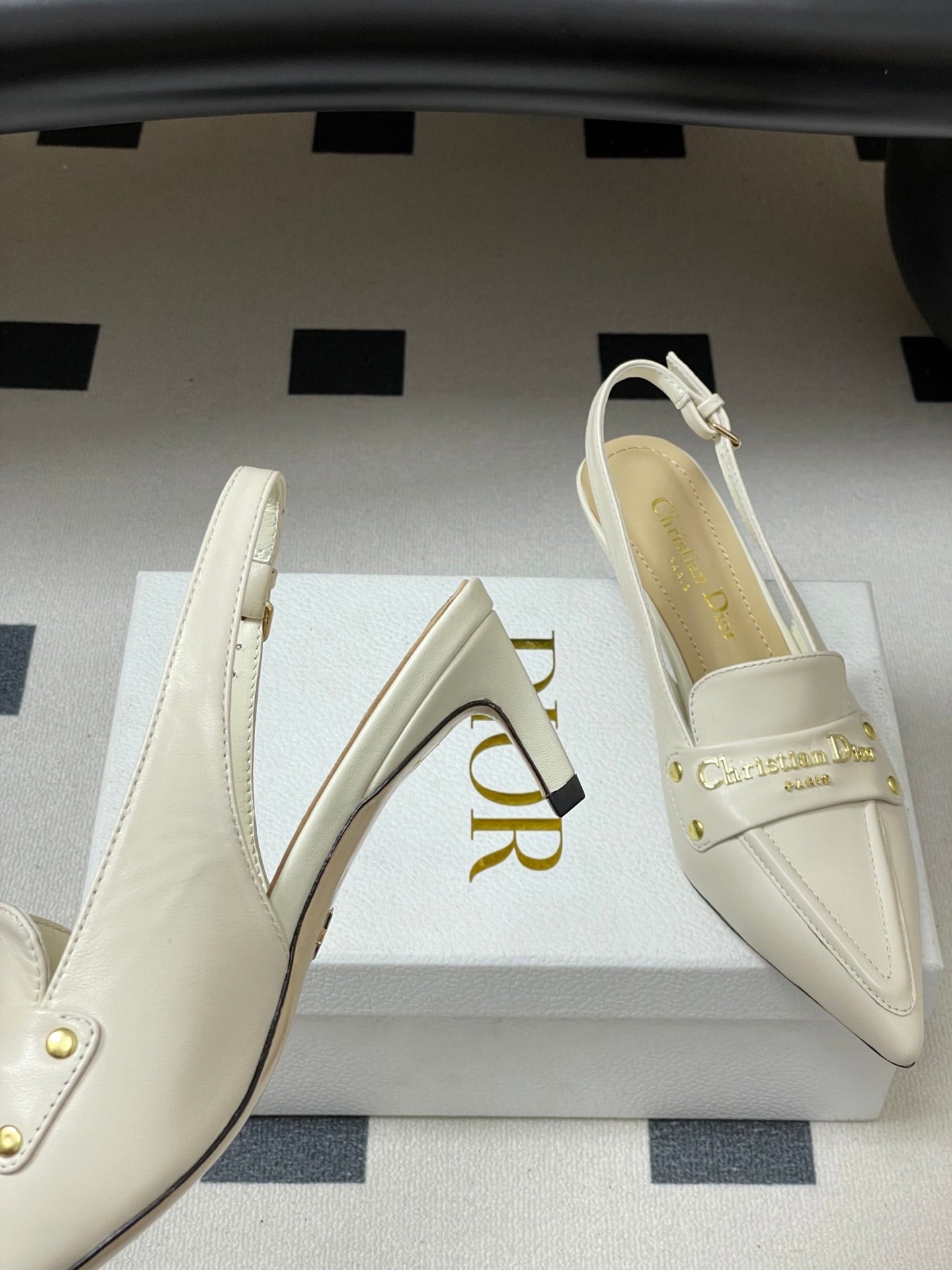 DIOR 25S BOY SLINGBACK HIGH HEELS 50 MM IN WHITE LAMBSKIN