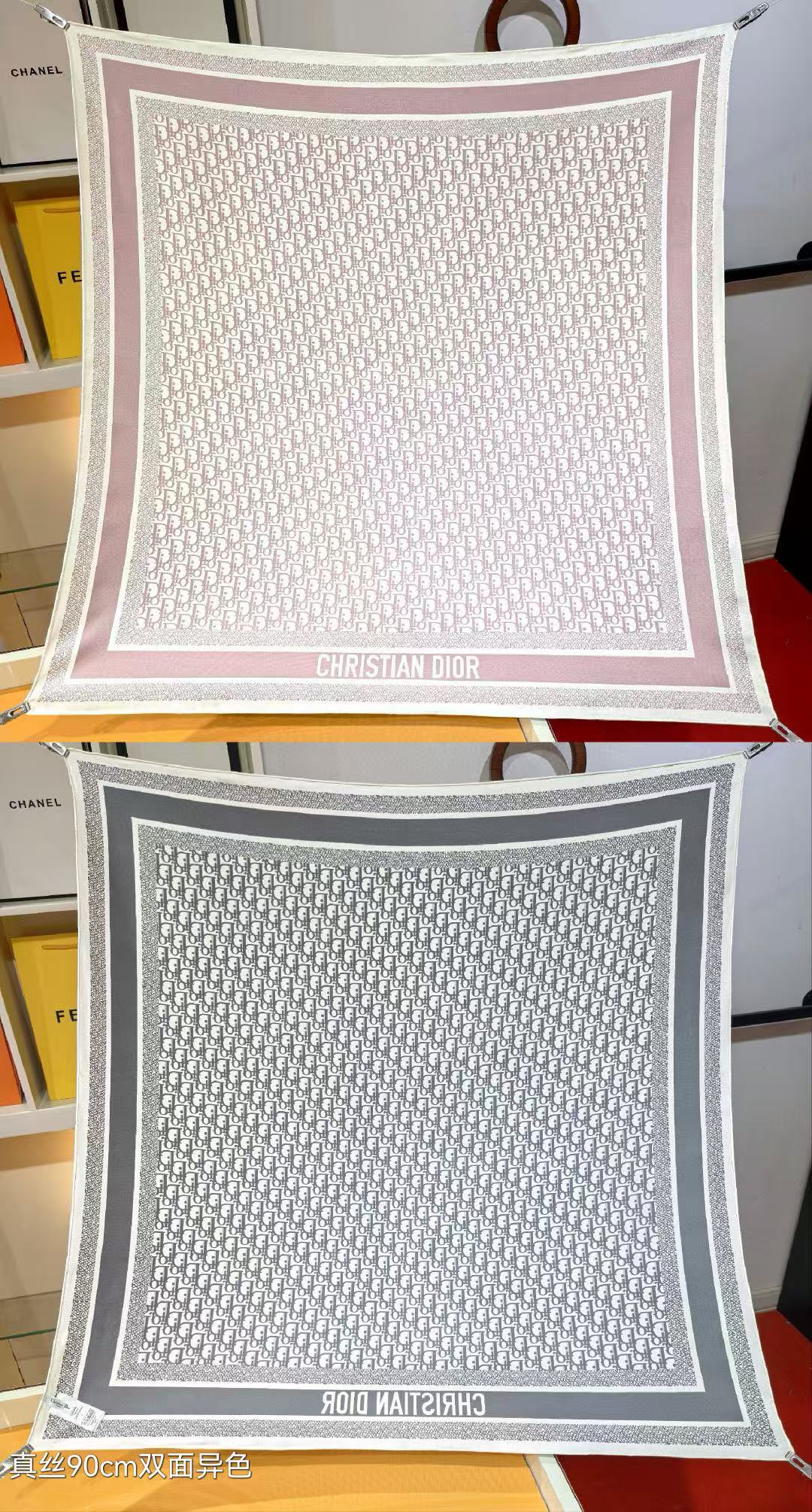 CD SCARF DOUBLE-SIDED IN PINK AND GREY MONOGRAM SILK