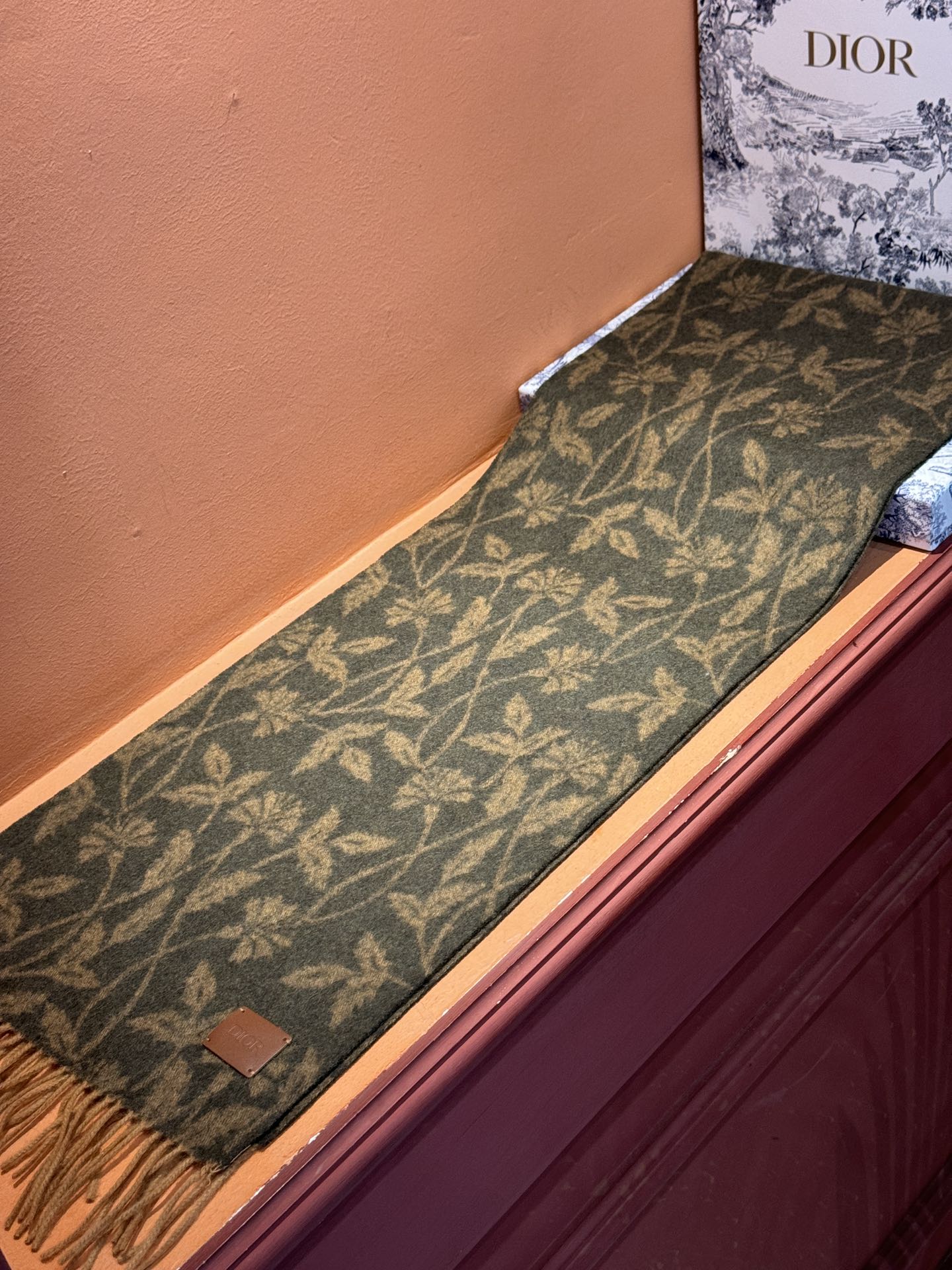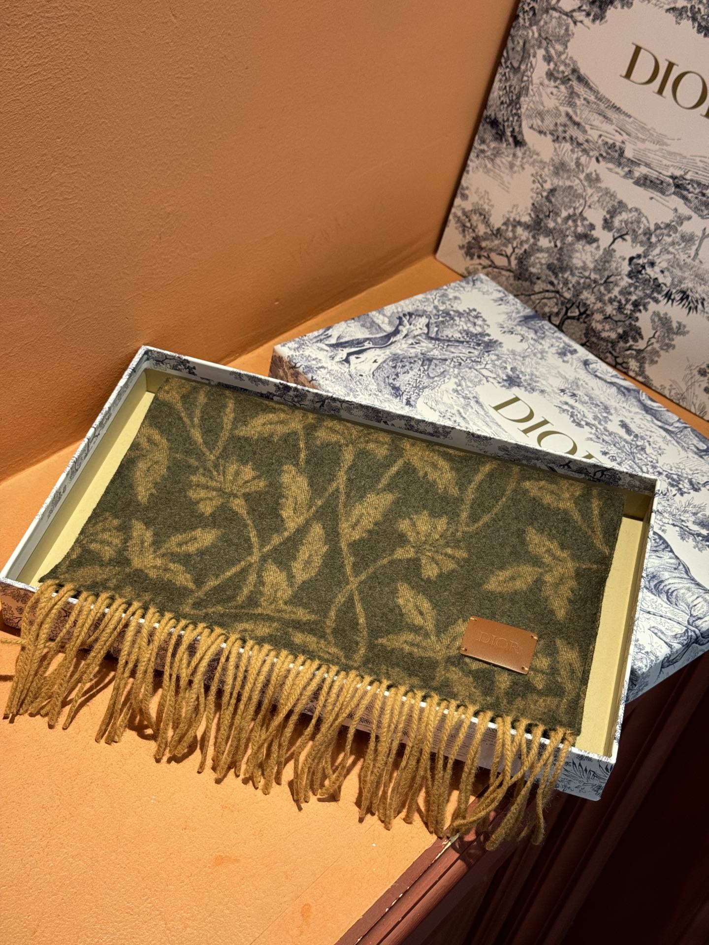 SCARF 180 CM IN OLIVE GREEN MONOGRAM CASHMERE 394642