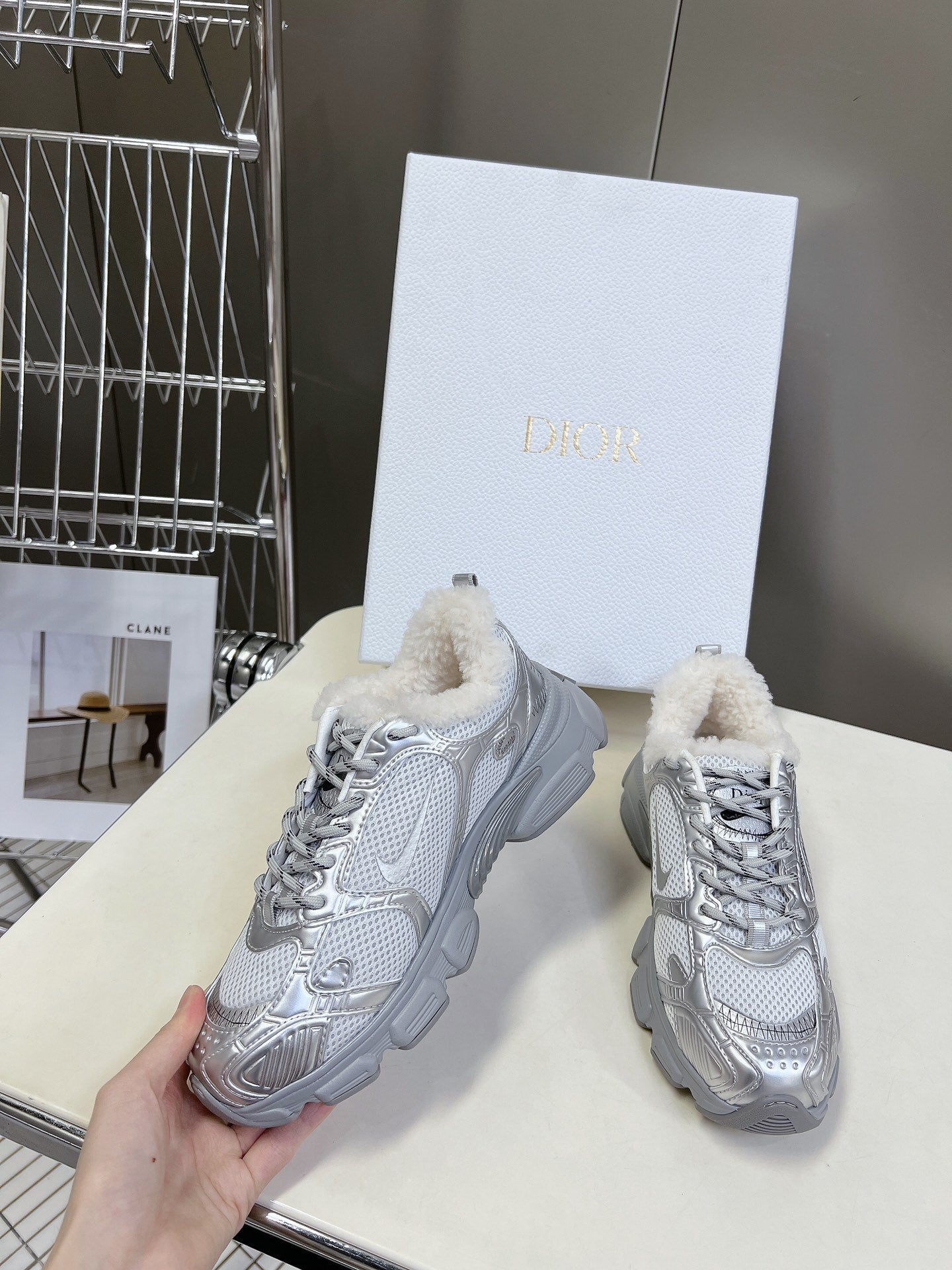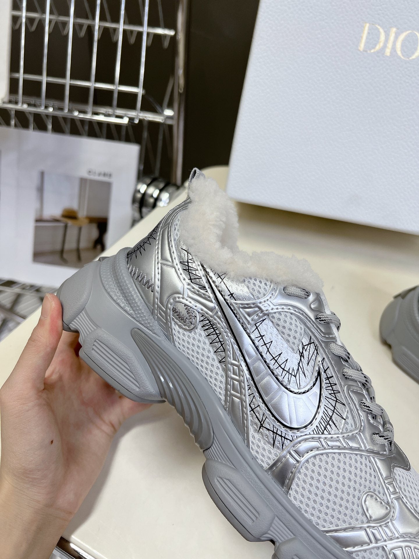 DIOR CHRONO SNEAKER 25S IN SILVER LAMBSKIN AND MESH FABRIC STYLE 1