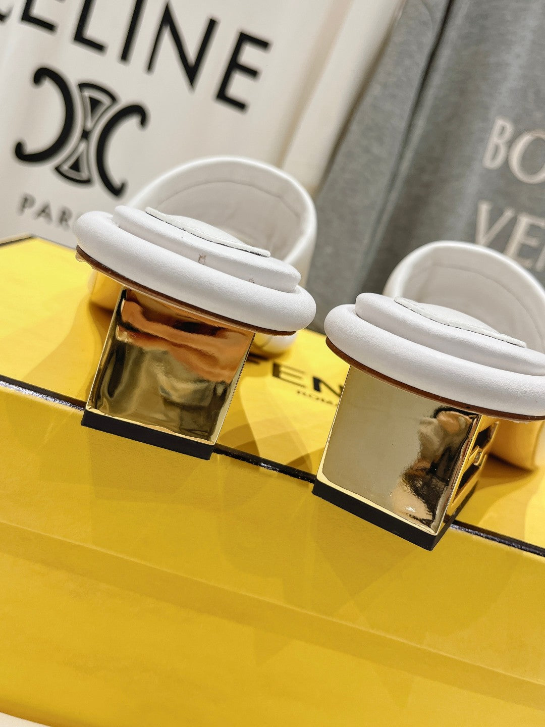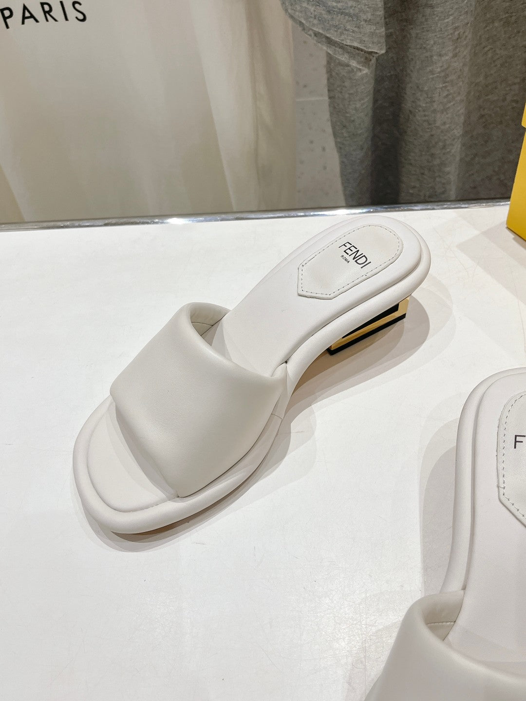 FENDI BAGUETTE MEDIUM-HEEL SANDALS 45 MM IN WHITE CALFSKIN