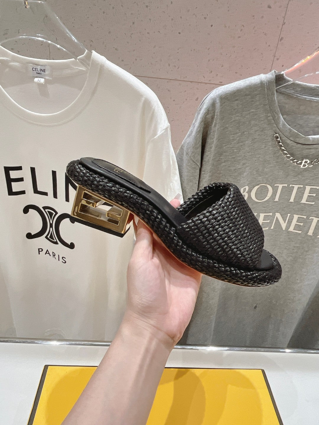 FENDI FFOLD MEDIUM-HEEL SANDALS 45 MM IN BLACK COTTON FIBRE
