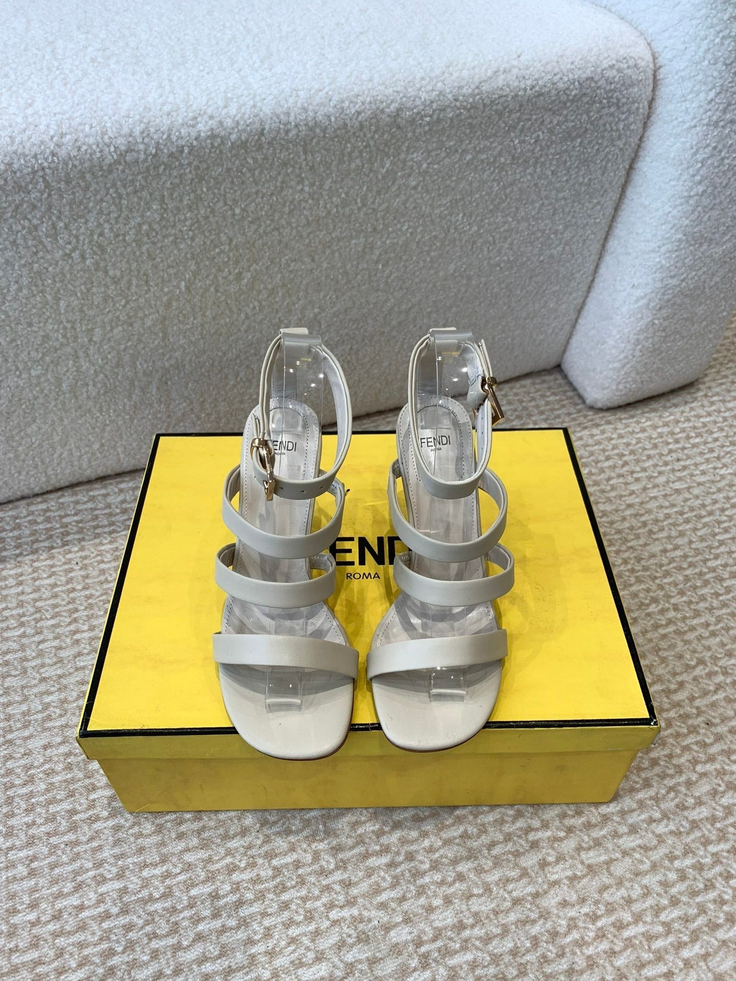 FENDI HIGH SANDAL 10 CM IN BEIGE CALFSKIN