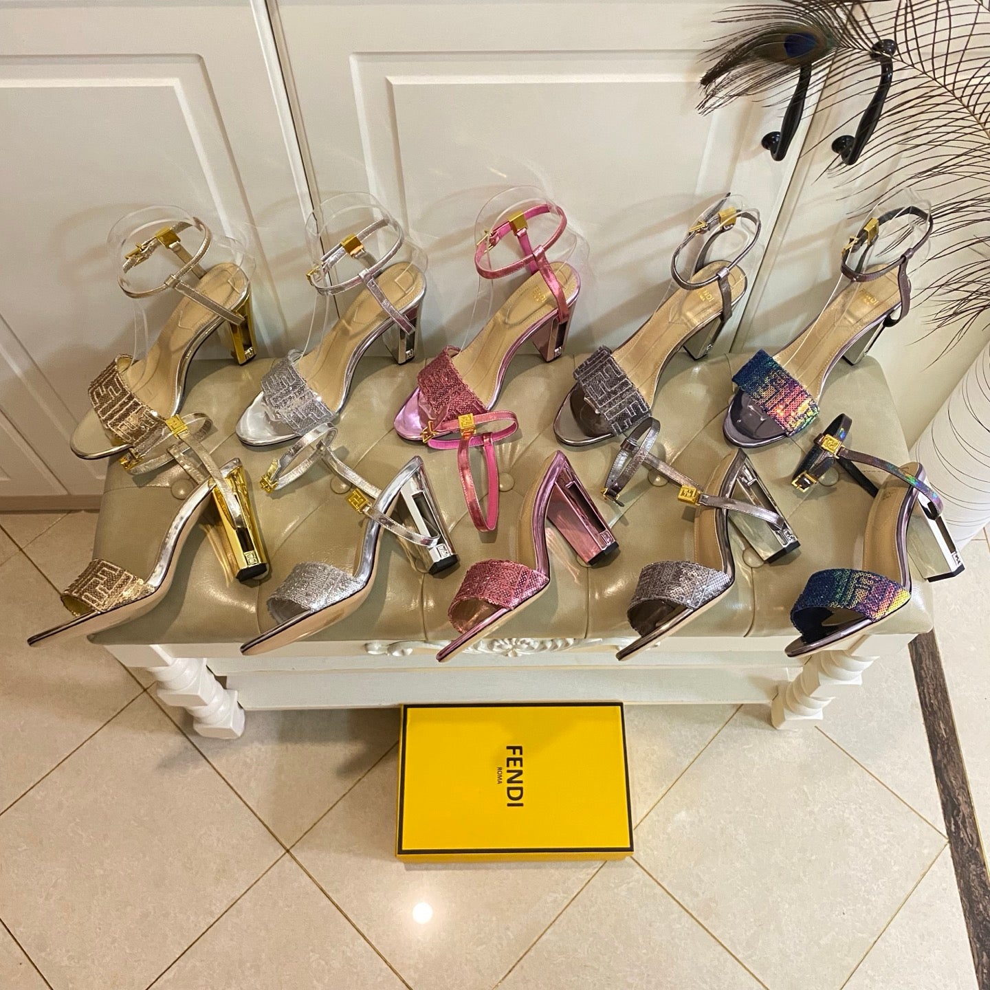 FF FIRST HIGH-HEEL 100MM IN METALLIC PINK CALFSKIN AND SEQUIN